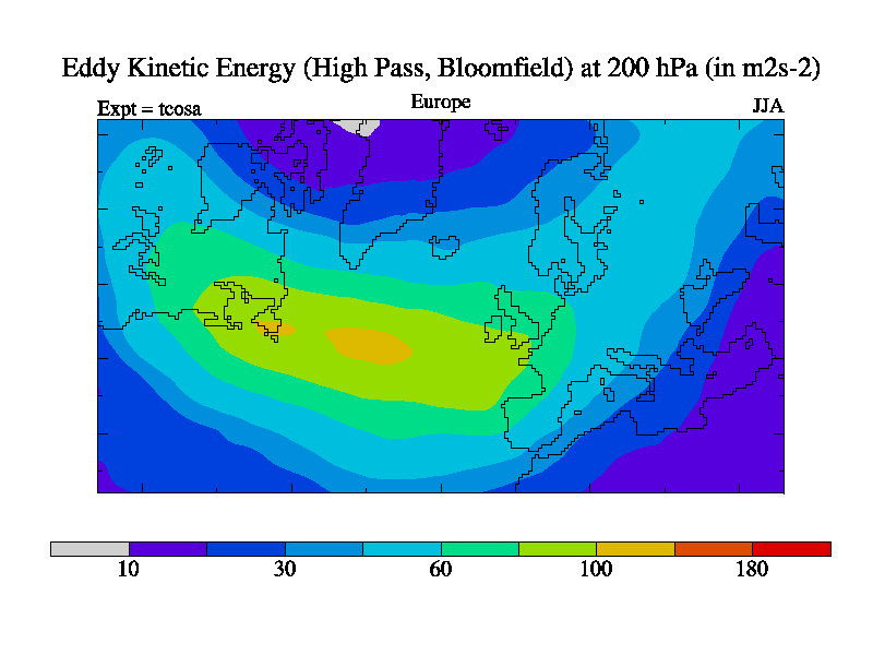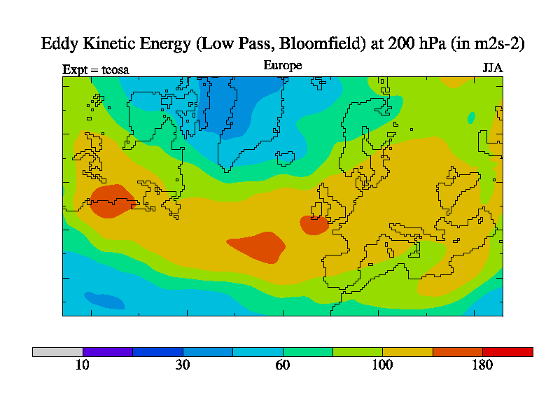 Low Pass Eddy Kinetic Energy at 200 hPa