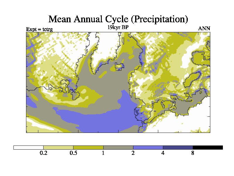 This simulation is identical to tctqg but for the European LAM. It uses a revised and improved method for calculating the ice sheet from Peltier. It is an 19kyr simulation for the set of BBC simulations. As control except the orbit and RAGS are for 19kyr BP, and land ice (and land sea mask is changed).