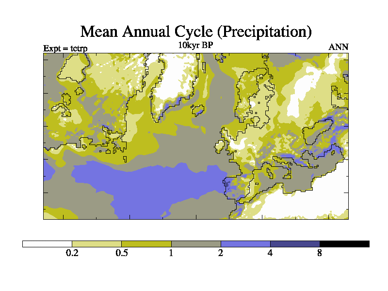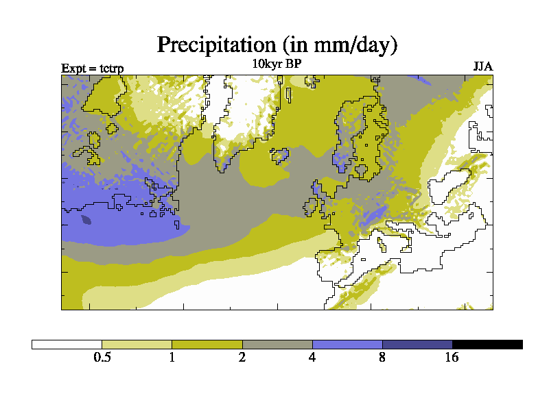 This simulation is identical to tctqp but for the European LAM. It uses a revised and improved method for calculating the ice sheet from Peltier. It is an 10kyr simulation for the set of BBC simulations. As control except the orbit and RAGS are for 10kyr BP, and land ice (and land sea mask is changed).