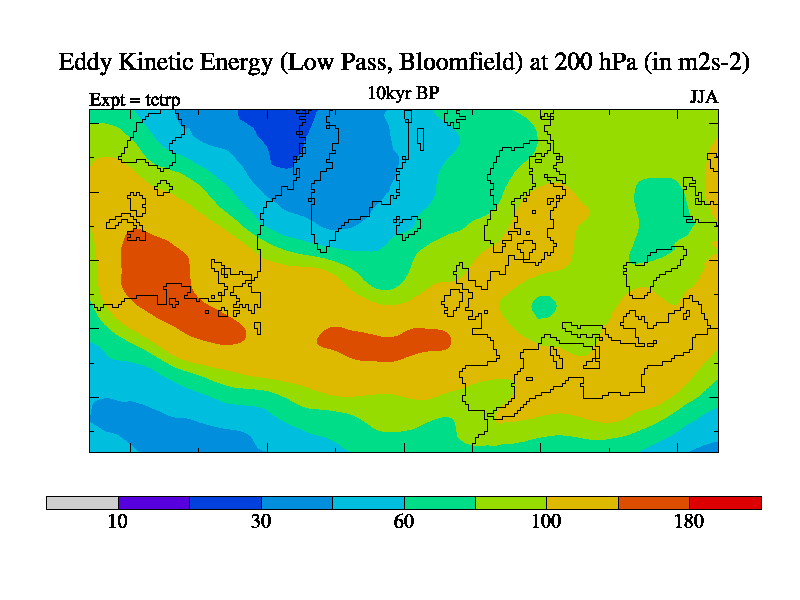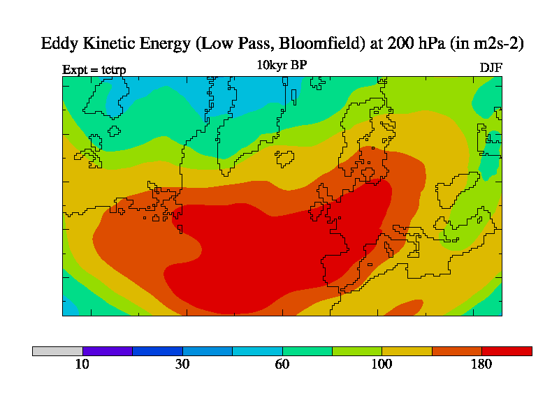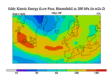 Low Pass Eddy Kinetic Energy at 200 hPa