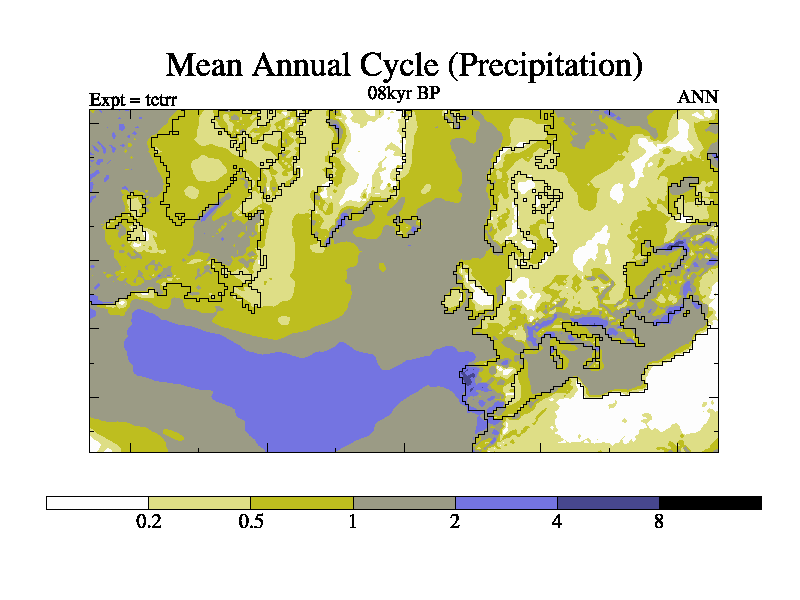 This simulation is identical to tctqr but for the European LAM. It uses a revised and improved method for calculating the ice sheet from Peltier. It is an 08kyr simulation for the set of BBC simulations. As control except the orbit and RAGS are for 08kyr BP, and land ice (and land sea mask is changed).