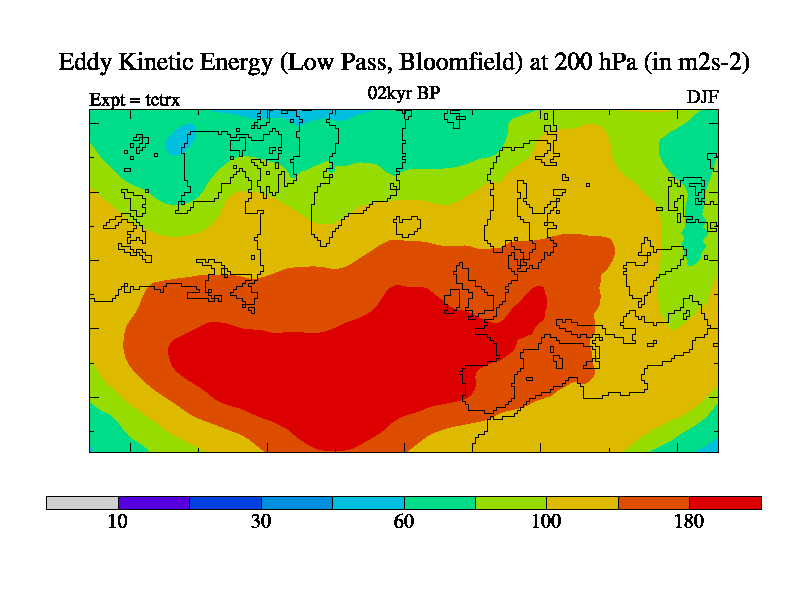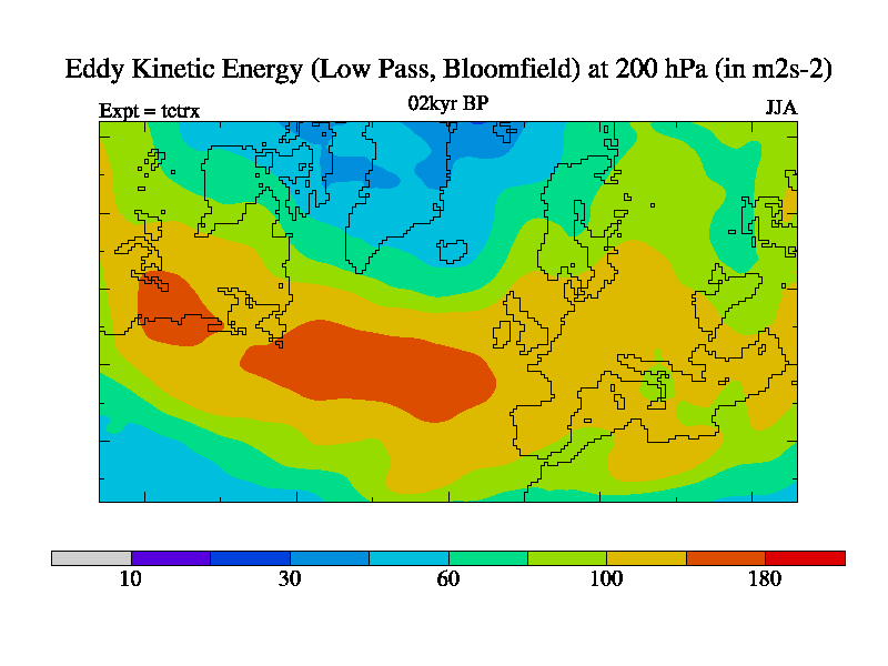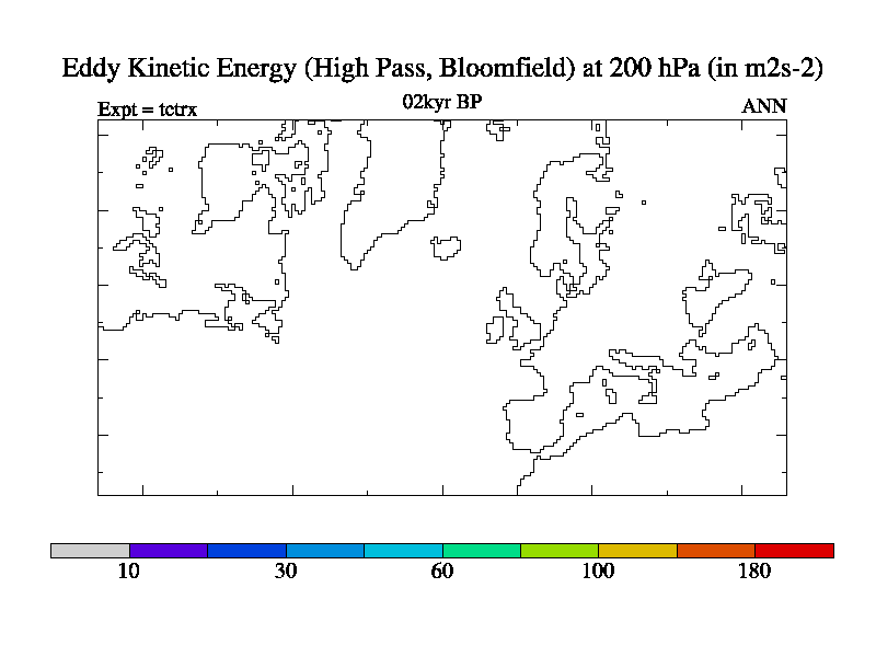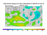 Low Pass Eddy Kinetic Energy at 200 hPa