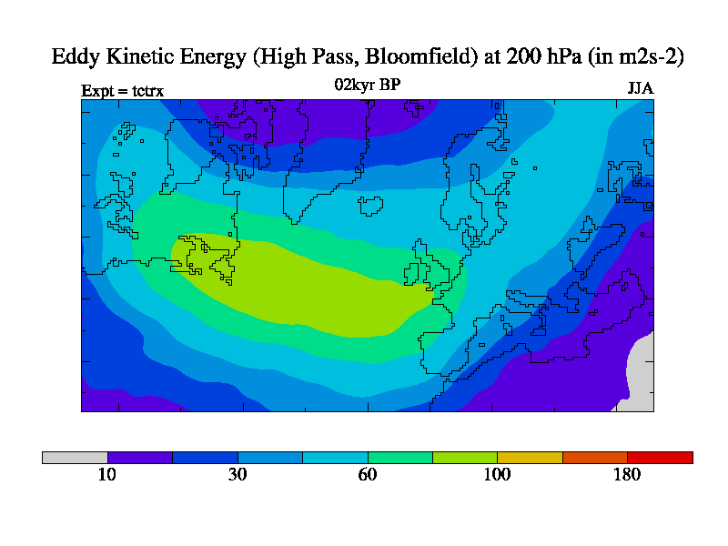 High Pass Eddy Kinetic Energy at 200 hPa