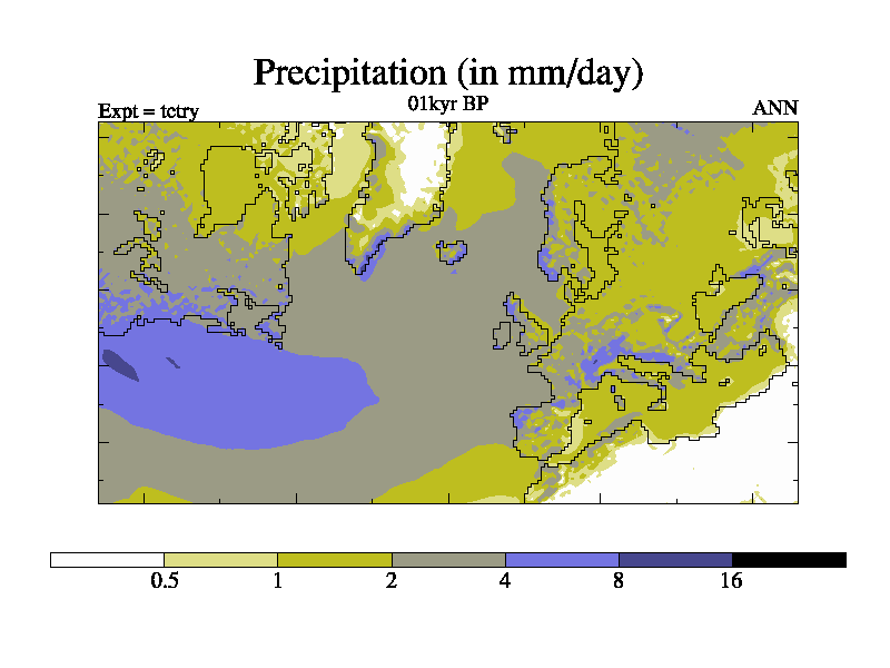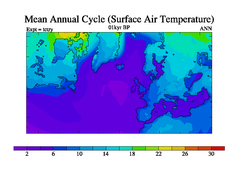 This simulation is identical to tctqy but for the European LAM. It uses a revised and improved method for calculating the ice sheet from Peltier. It is an 01kyr simulation for the set of BBC simulations. As control except the orbit and RAGS are for 01kyr BP, and land ice (and land sea mask is changed).
