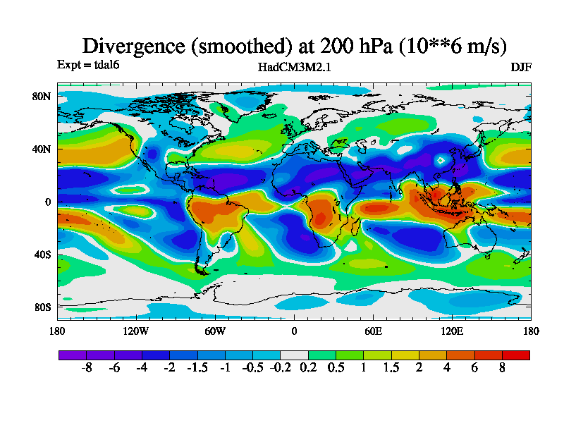Divergence (Smoothed) at 200 hPa