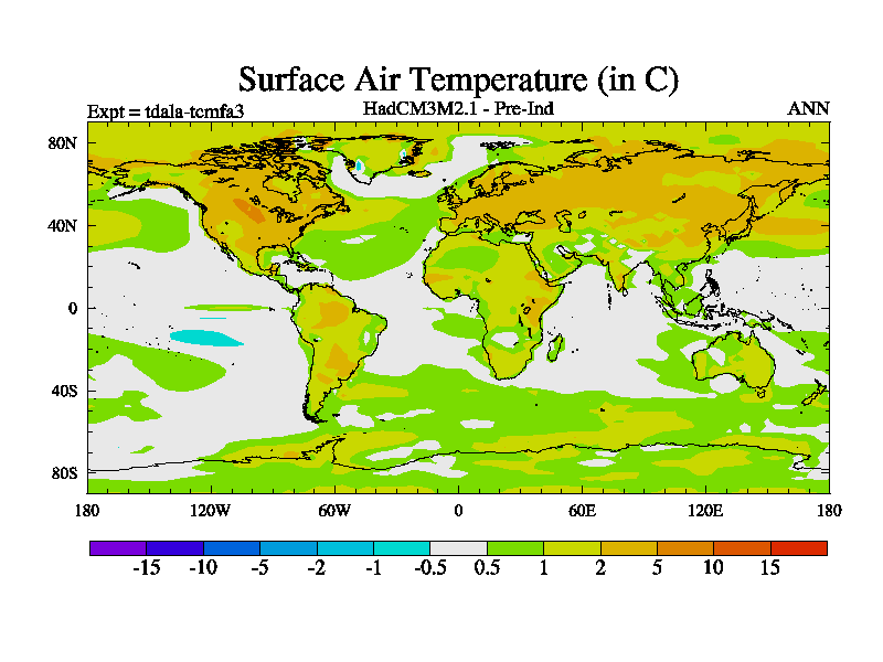This job is a copy of tczgb which is stored in swsvalde and represents a BRIDGE standard HadCM3-MOSES2.1 job. It was run on bigblue on Aug 2010 and used 8 processors (4 NS/2 EW). The latter should not matter but has rarely been tested. The results should be near identical to that run by Dan which was compared to benchmark results from the Hadley Centre themselves (PMIP2). This is identical to tcywb but with equilibrium TRIFFID turned on.