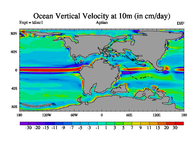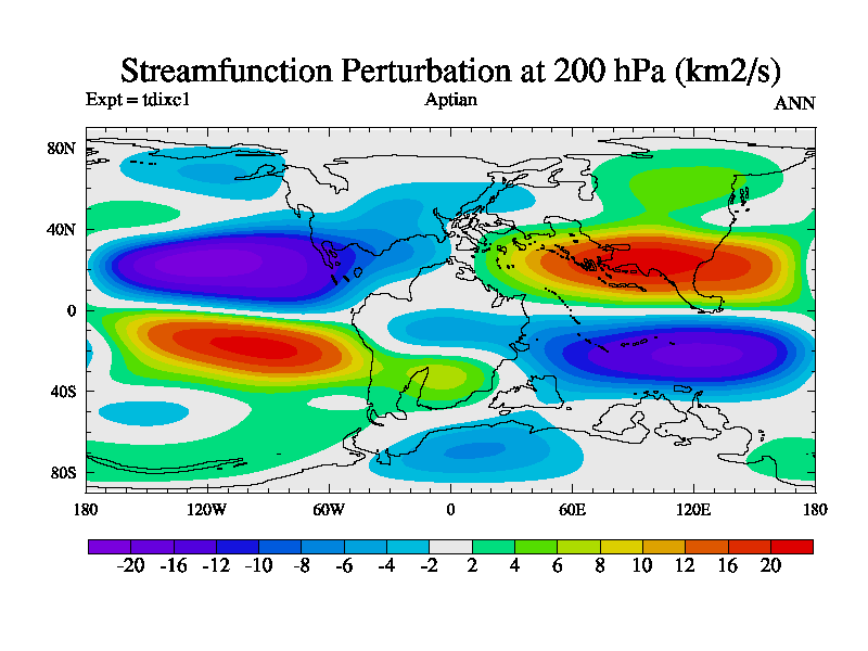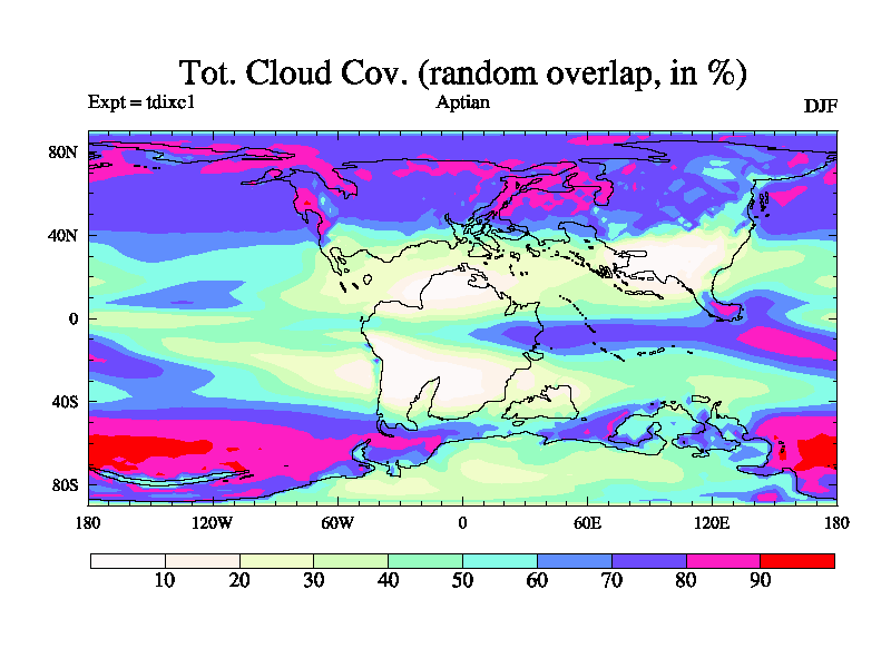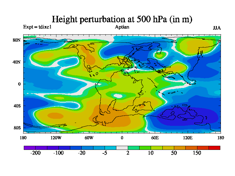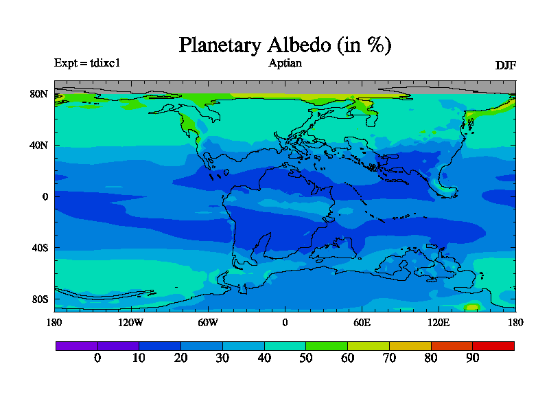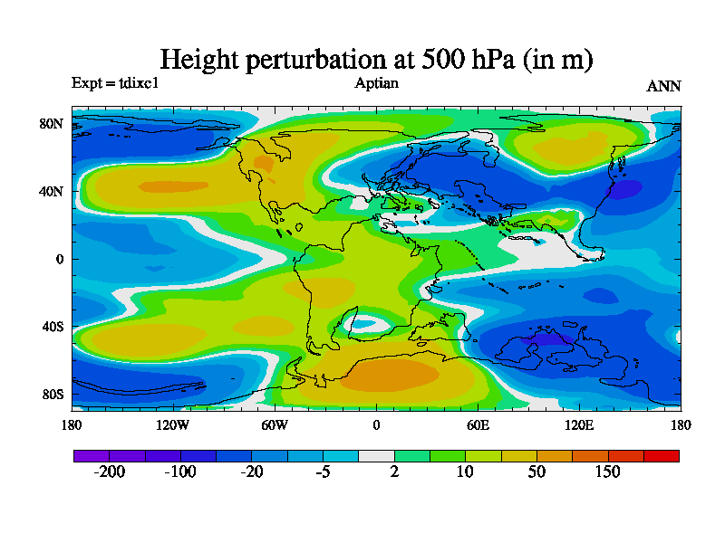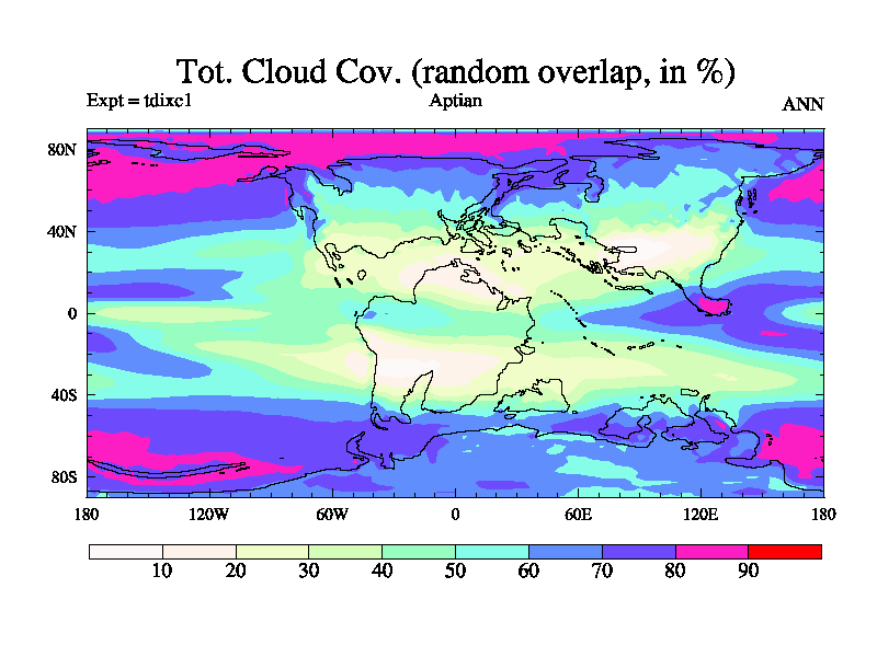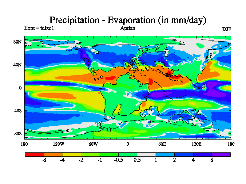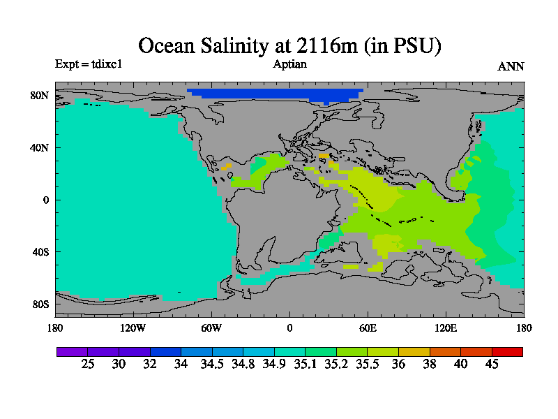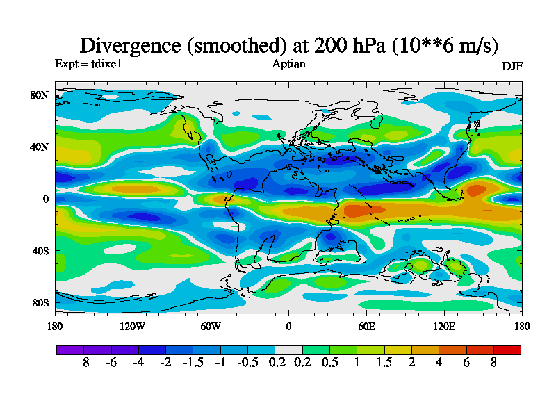 This is a Aptian simulation with new control palaeogeog, 4xCO2, and with appropriate reduction in solar constant. It is also using the newer ozone mod which better represents the effects of stratospheric ozone. It does include the ocean stream function.