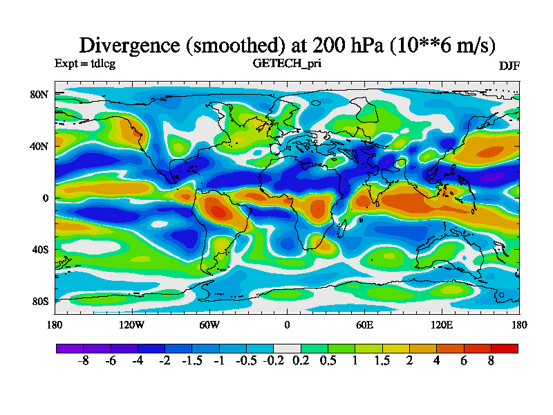 Divergence (Smoothed) at 200 hPa