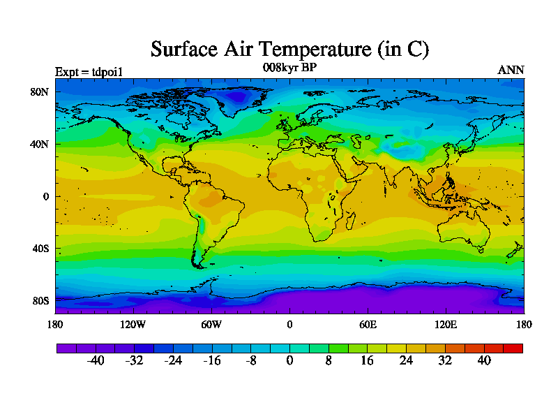 This is the 8kyr BP simulation for a new set of BBC runs using TRIFFID. Dynamic mode and with Kaplan disturbance data.