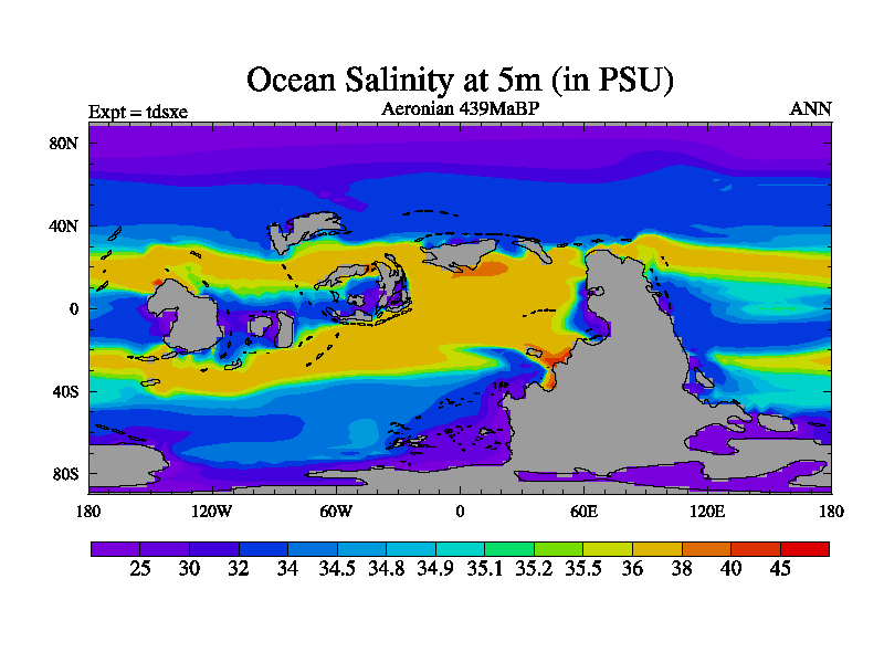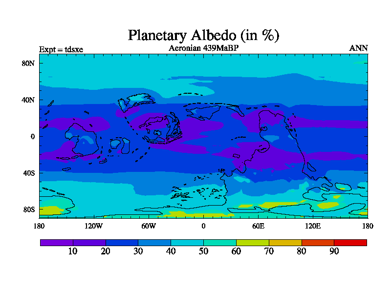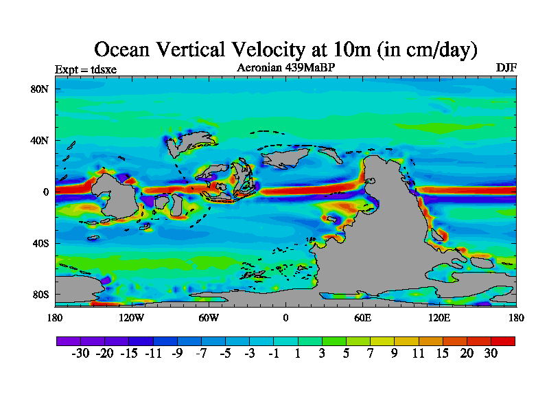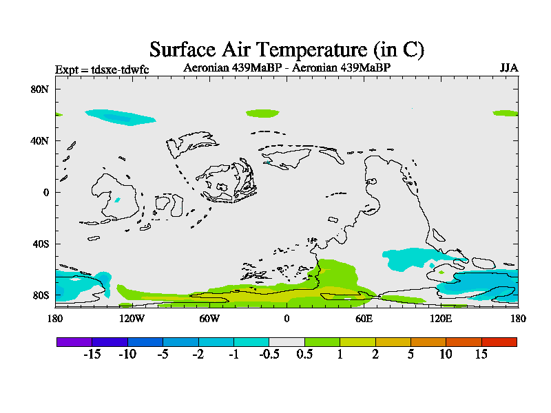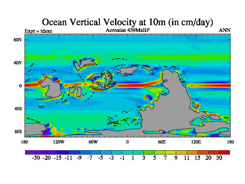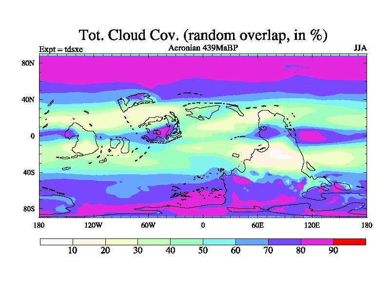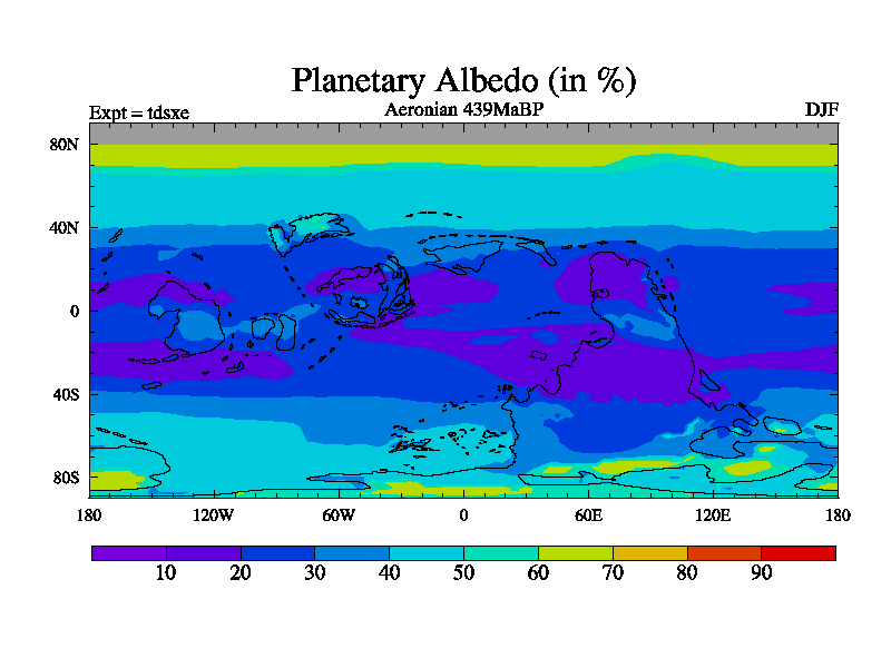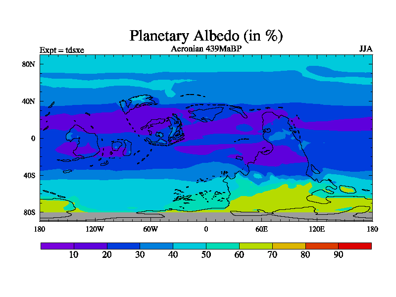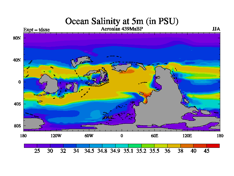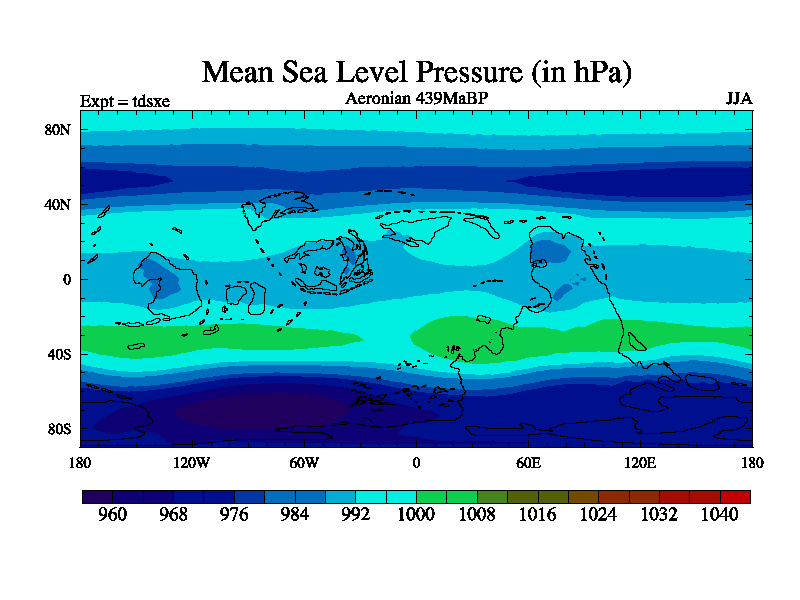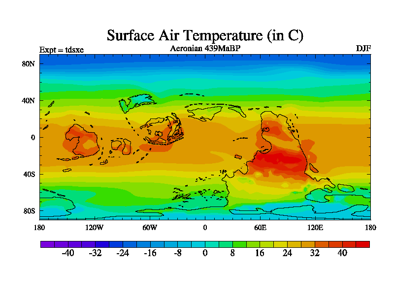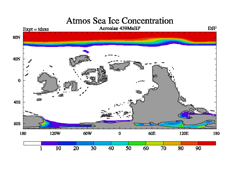 This is a Aeronian simulation with new control palaeogeog, 10xco2 and with appropriate reduction in solar constant. It is also using the newer ozone mod which better represents the effects of stratospheric ozone. It does include the ocean stream function.