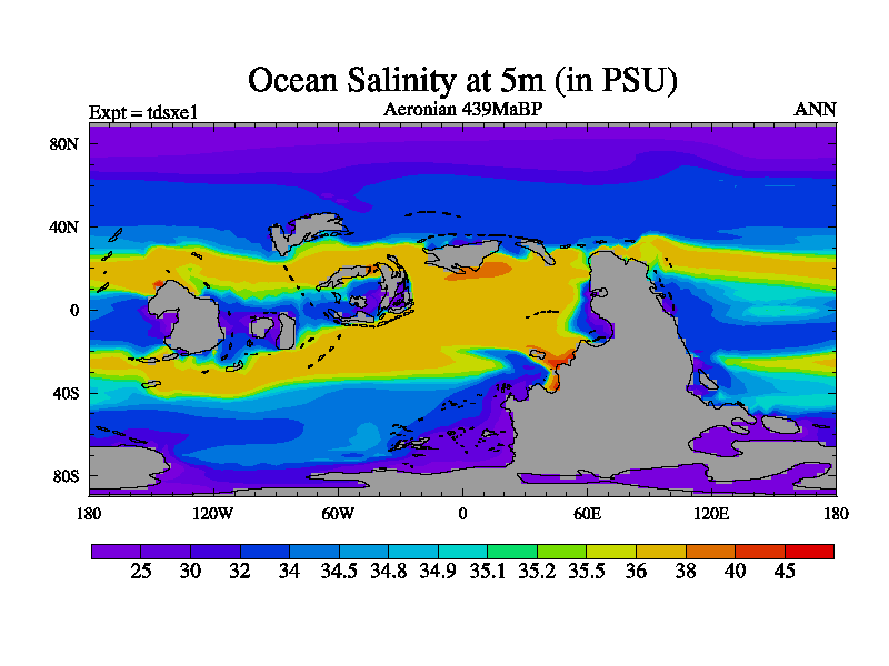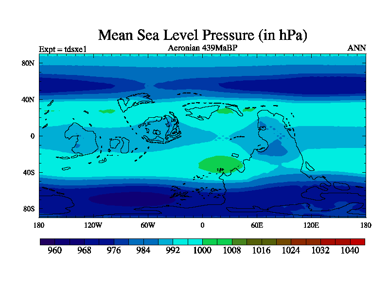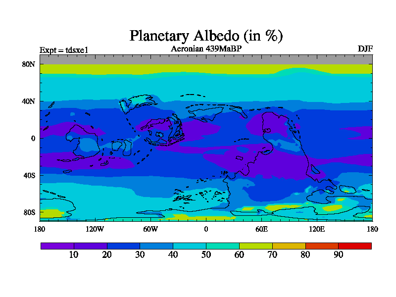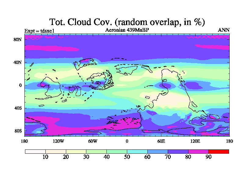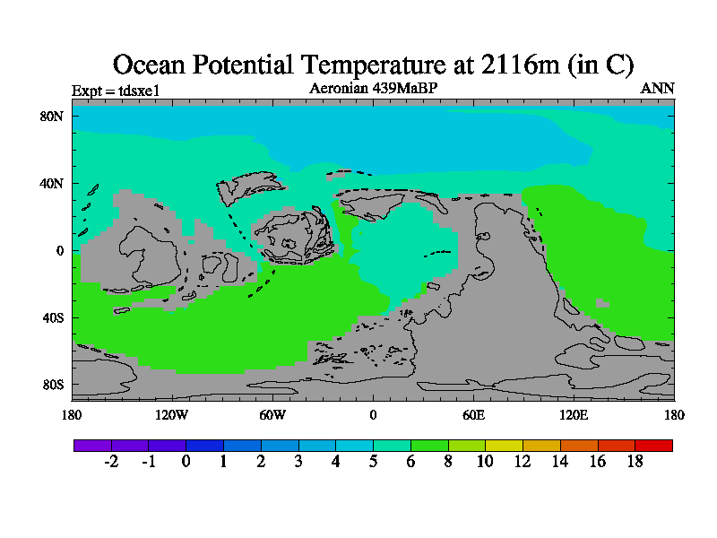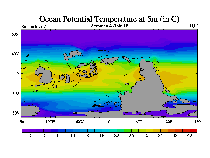 This is a Aeronian simulation with new control palaeogeog, 10xco2 and with appropriate reduction in solar constant. It is also using the newer ozone mod which better represents the effects of stratospheric ozone. It does include the ocean stream function.