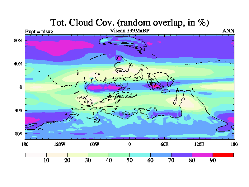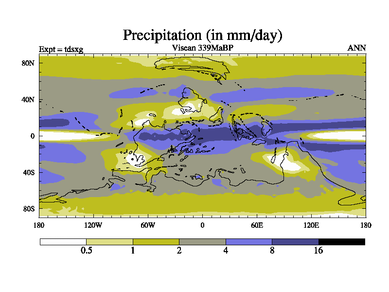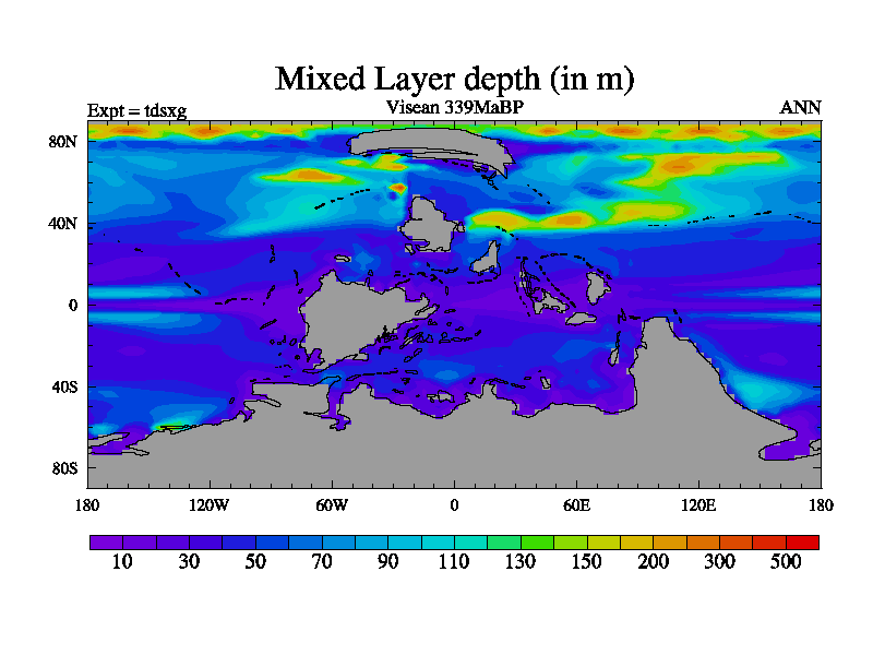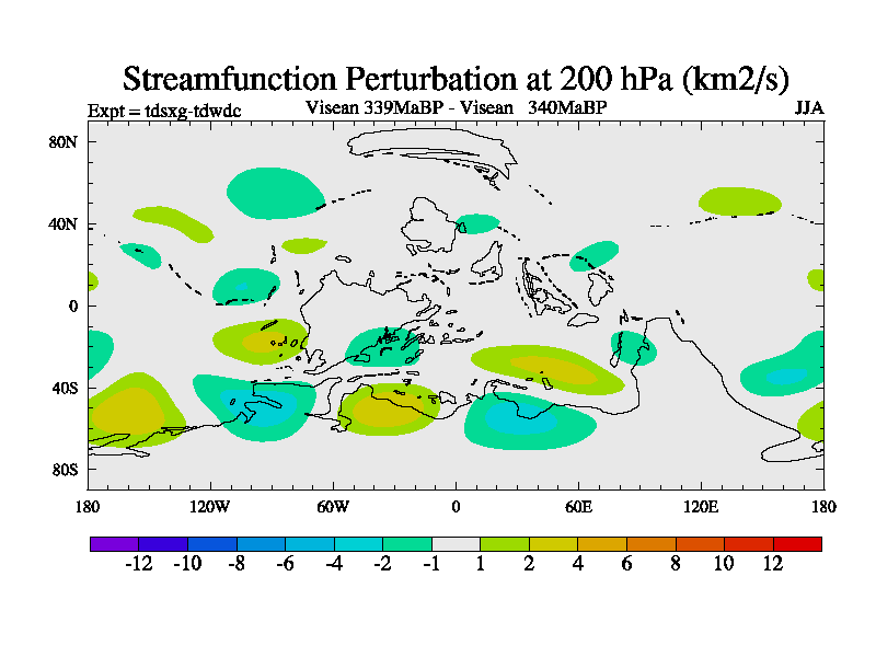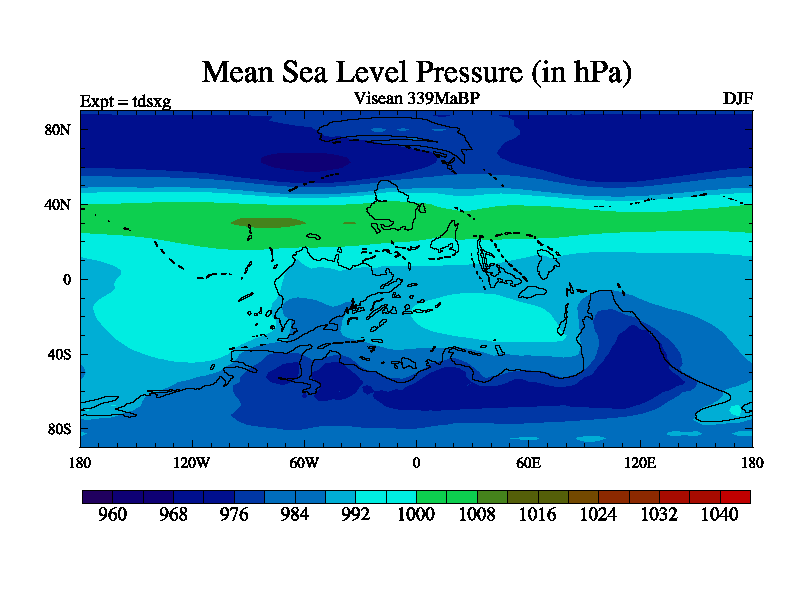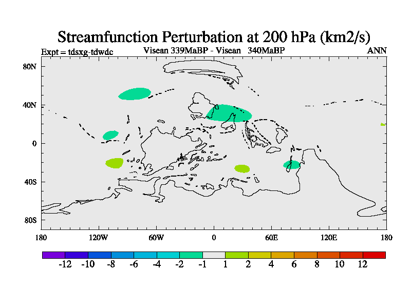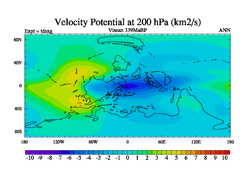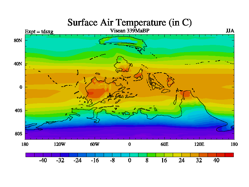 This is a Visean simulation with new control palaeogeog, 3xco2 and with appropriate reduction in solar constant. It is also using the newer ozone mod which better represents the effects of stratospheric ozone. It does include the ocean stream function.