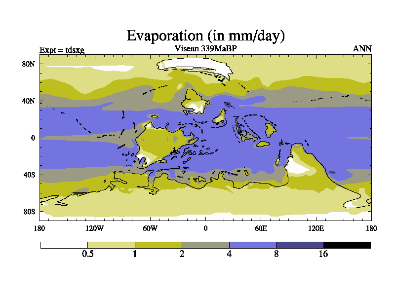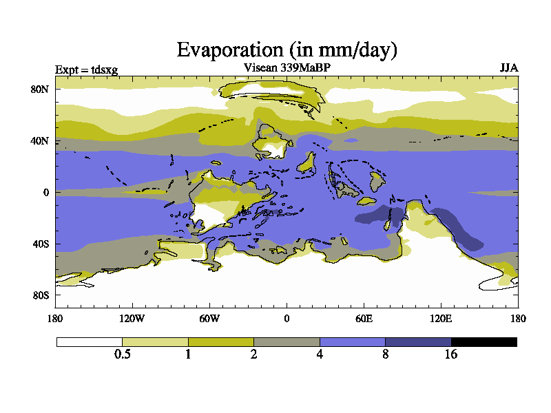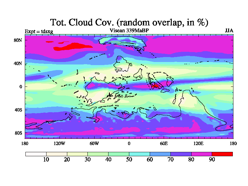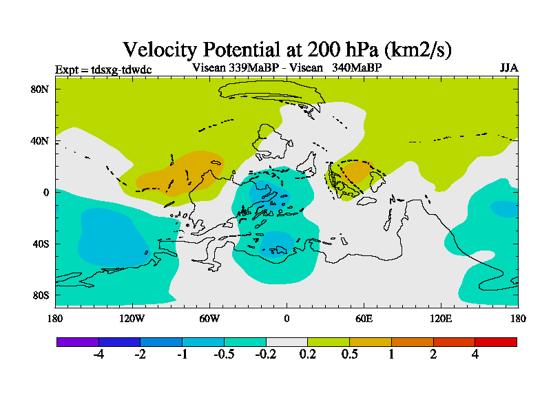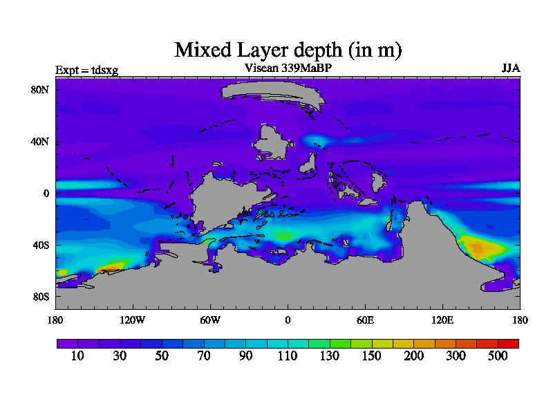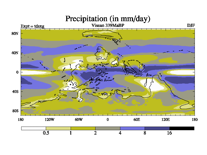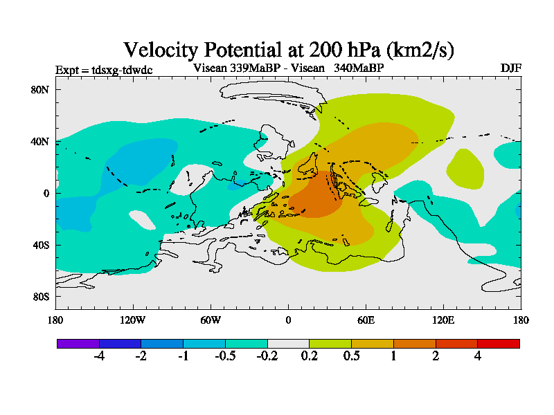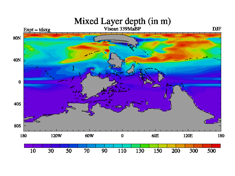 This is a Visean simulation with new control palaeogeog, 3xco2 and with appropriate reduction in solar constant. It is also using the newer ozone mod which better represents the effects of stratospheric ozone. It does include the ocean stream function.