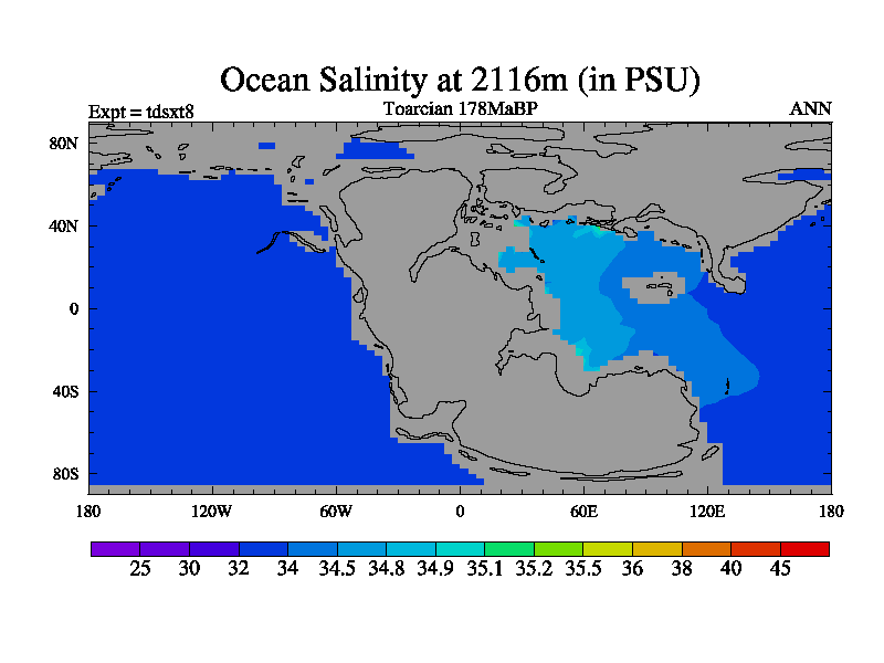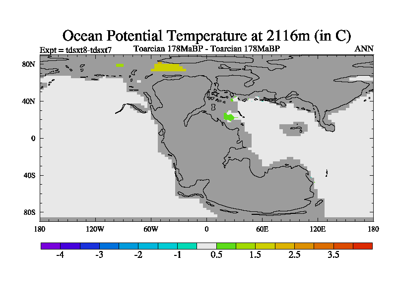 As tdsxo but started at about 950 years into run, and with correction of deep ocean temperature.