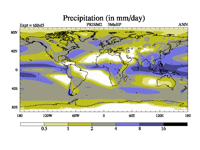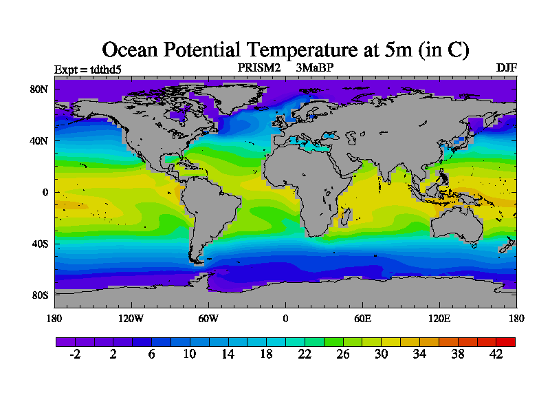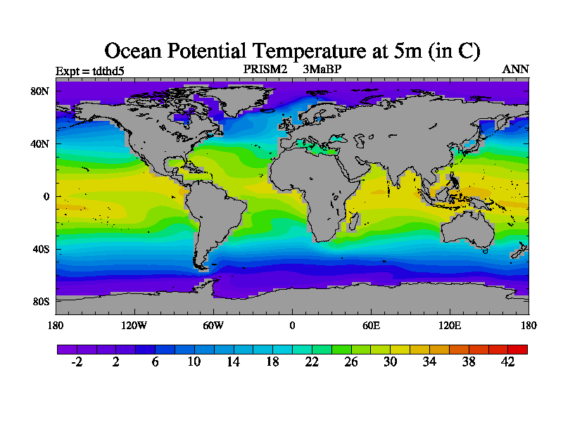 PRISM2 3MaBP boundary conditions with 400ppm CO2. As tdthc but with no salinity flux correction and convection over whole globe