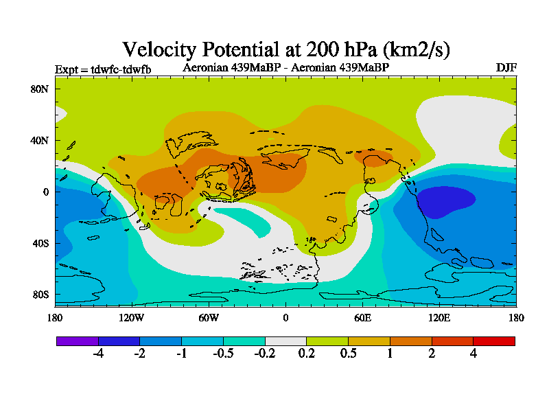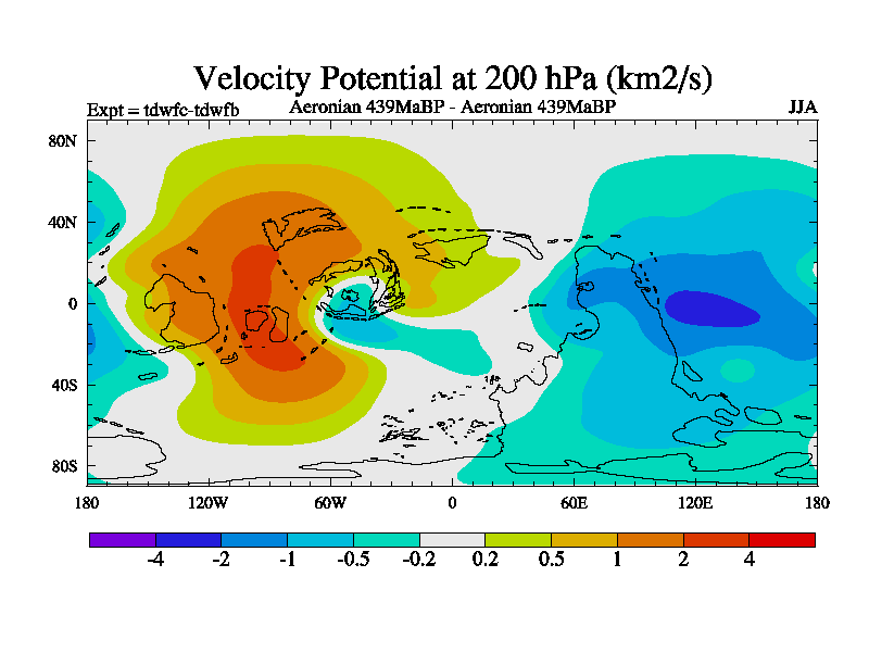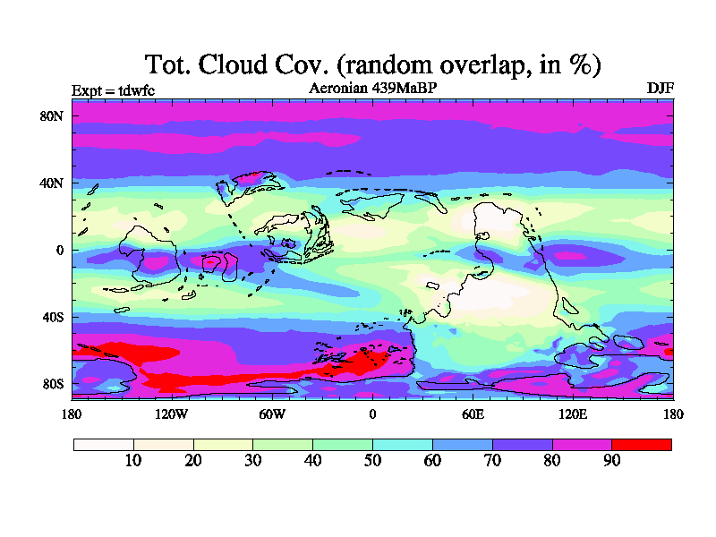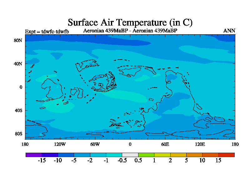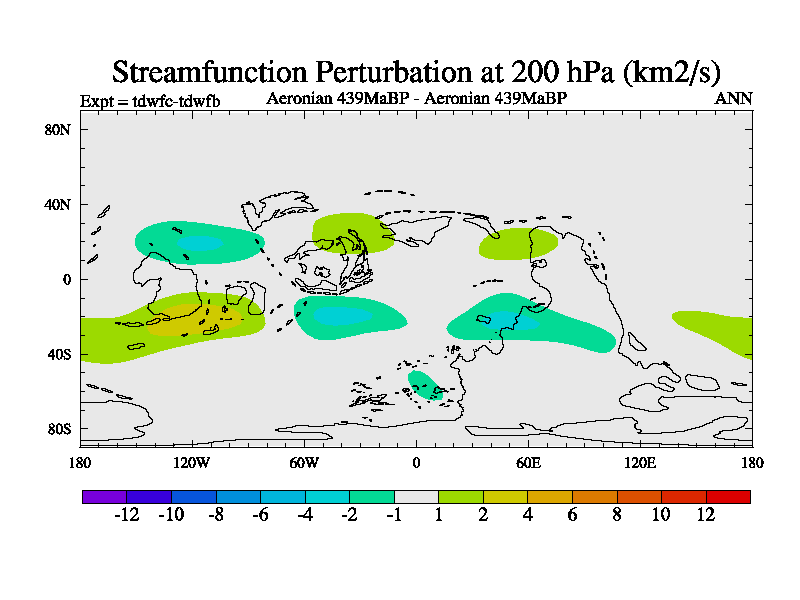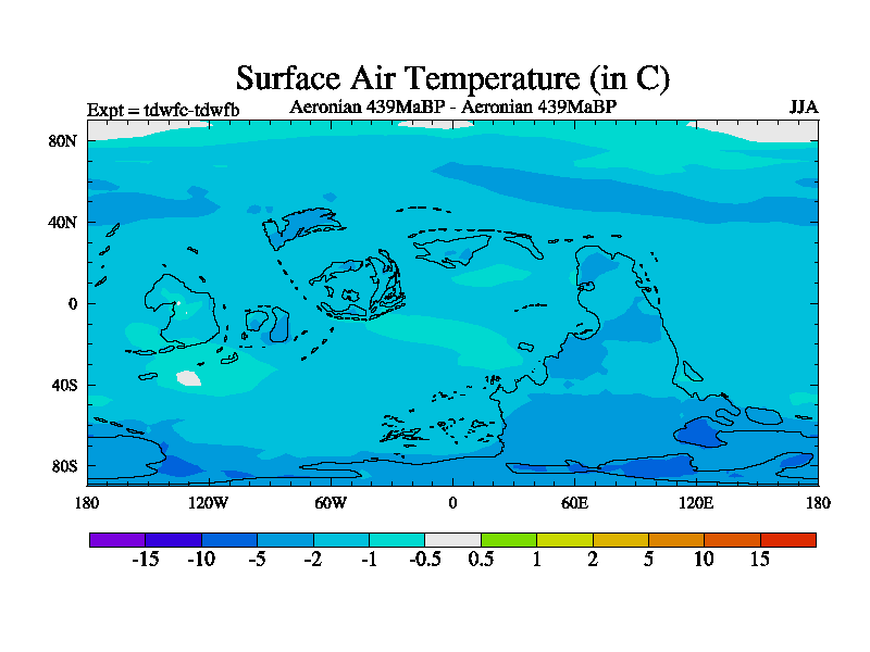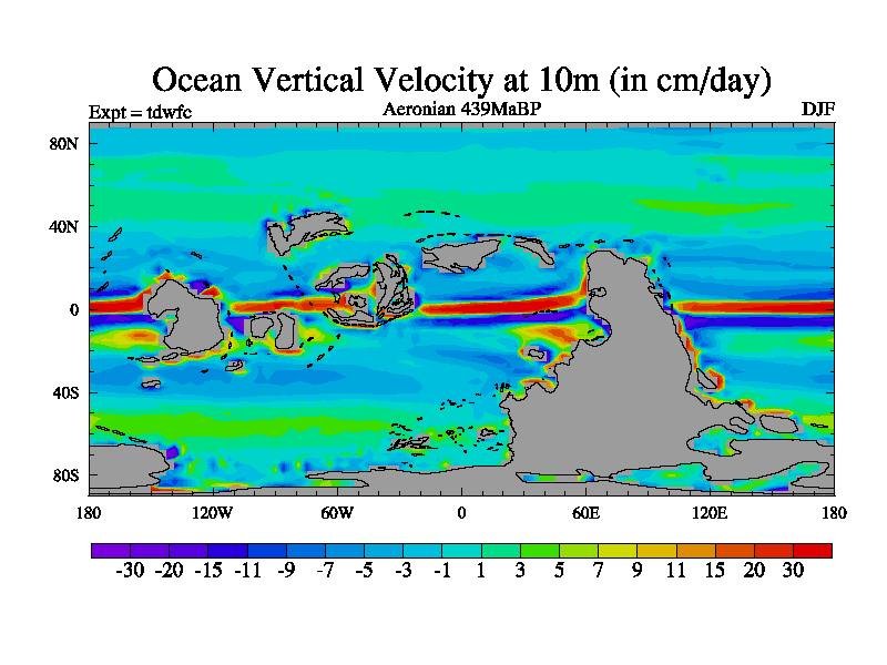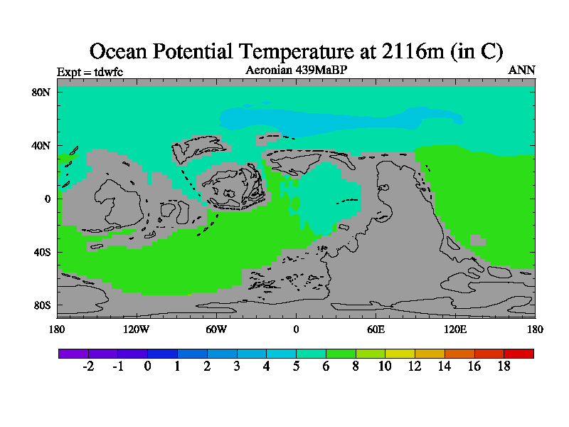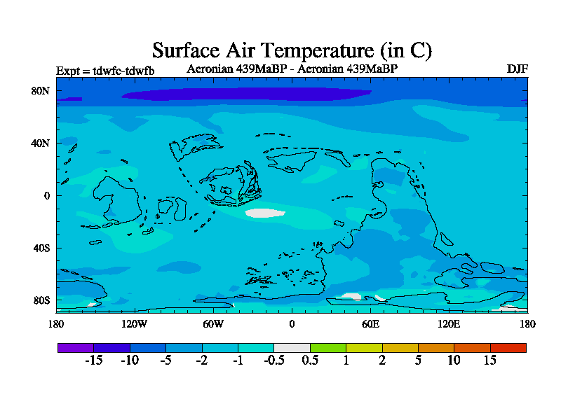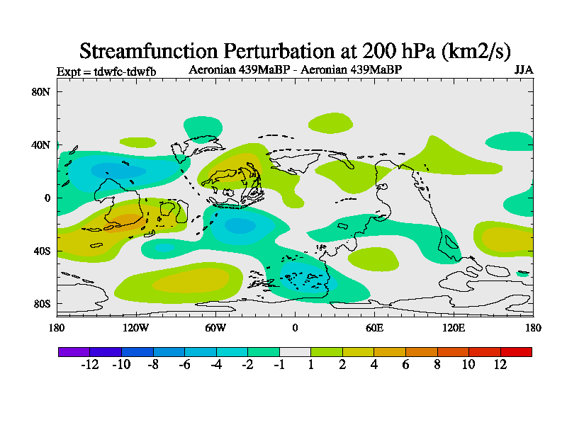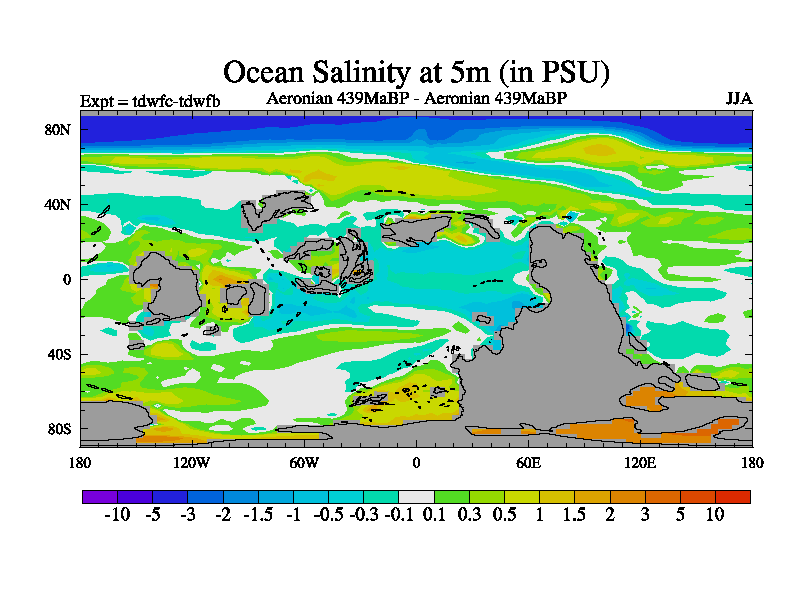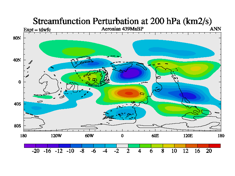 This is a Aeronian simulation with new control palaeogeog, 10xco2 and with appropriate reduction in solar constant. It is also using the newer ozone mod which better represents the effects of stratospheric ozone. It does include the ocean stream function.