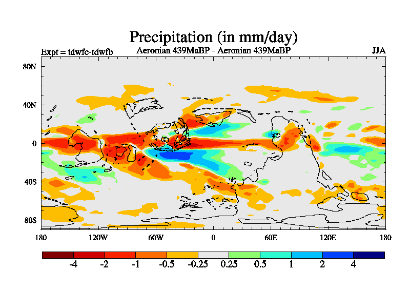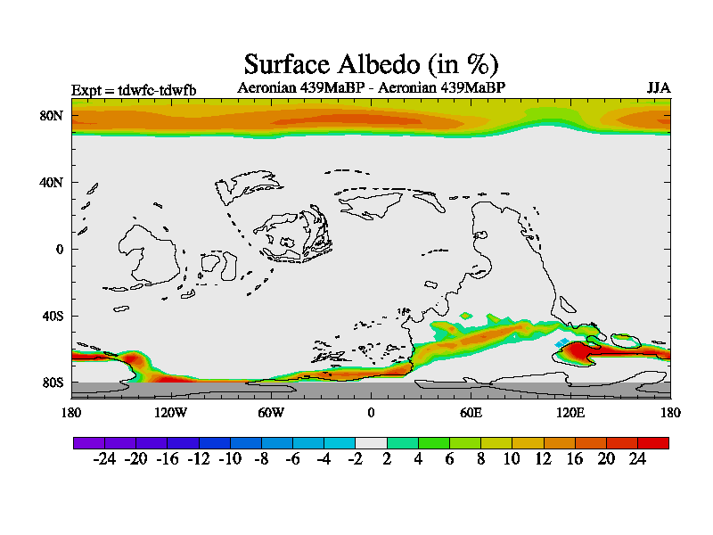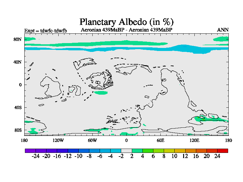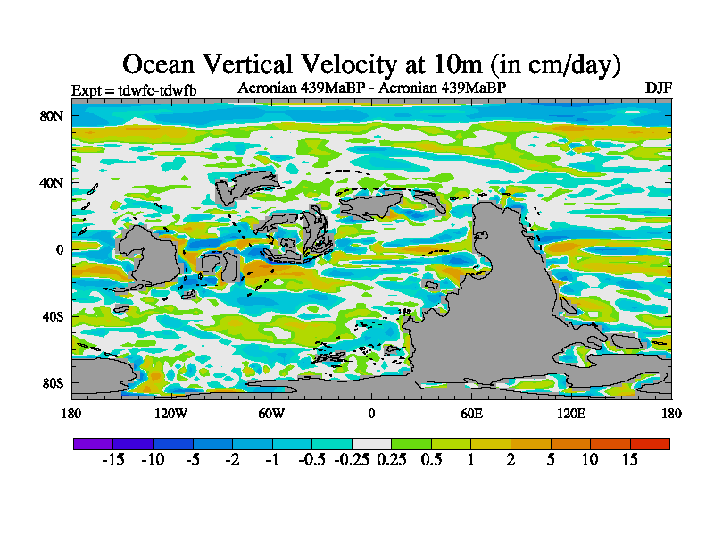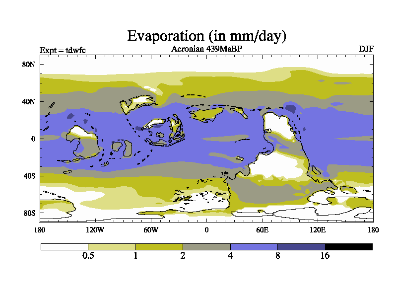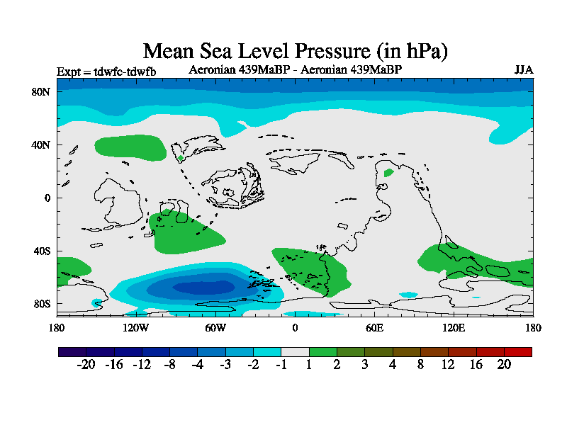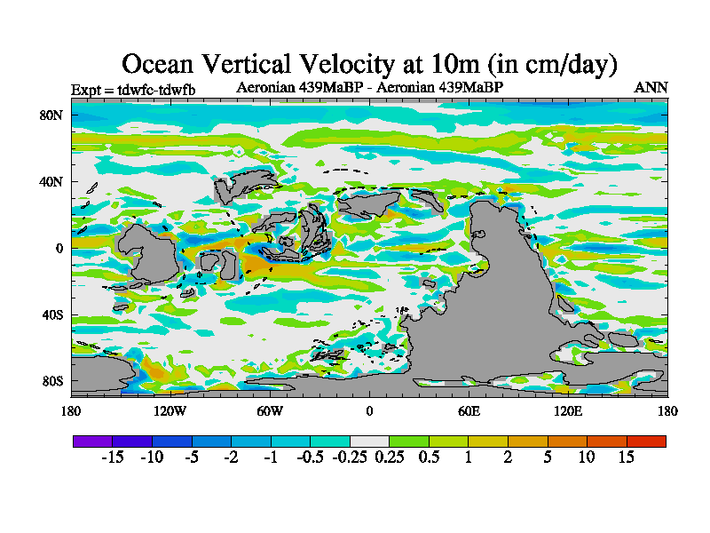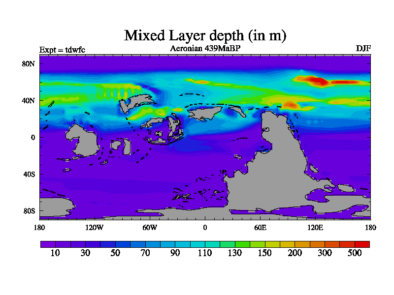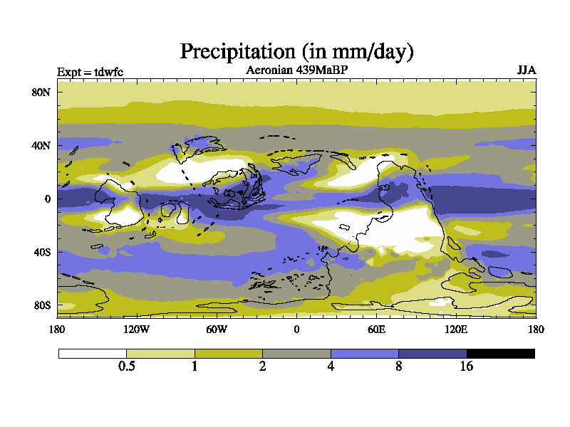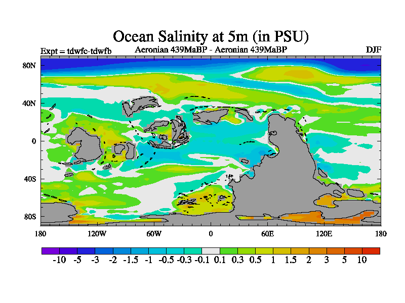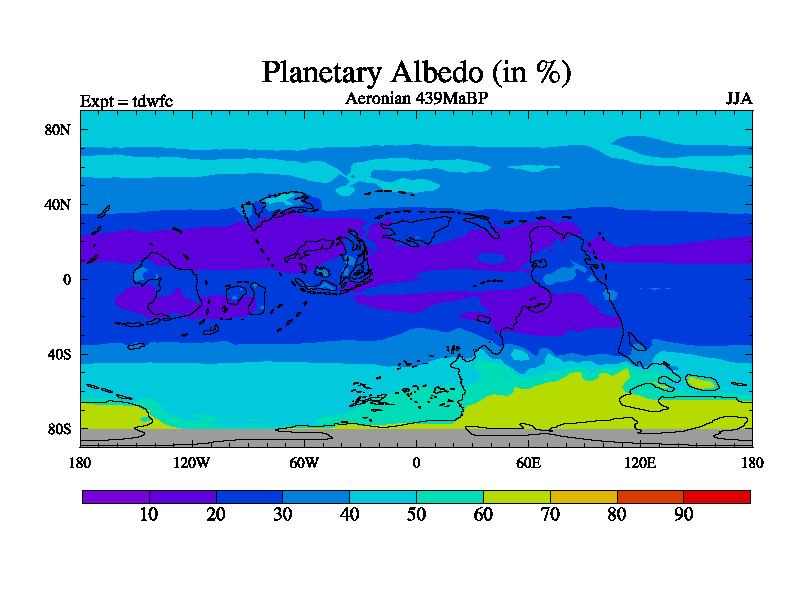 This is a Aeronian simulation with new control palaeogeog, 10xco2 and with appropriate reduction in solar constant. It is also using the newer ozone mod which better represents the effects of stratospheric ozone. It does include the ocean stream function.