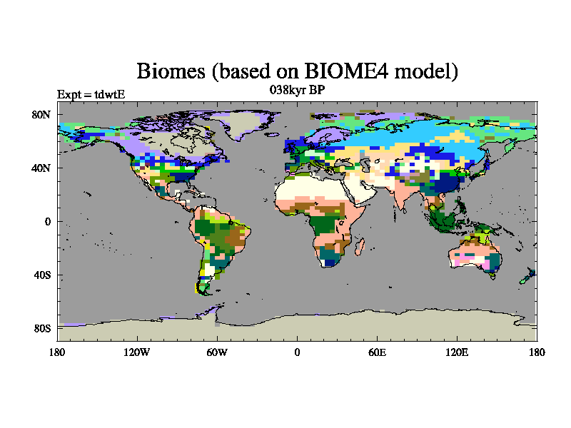 This is the 038kyr BP simulation for a new set of BBC runs using TRIFFID. Equilibrium mode, started from tdac set of simulations (old BBC dynamic TRIFFID runs). This version includes the dark_respiration update.