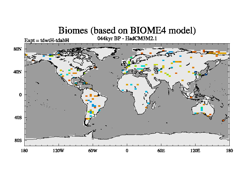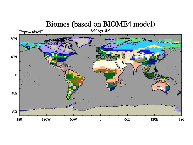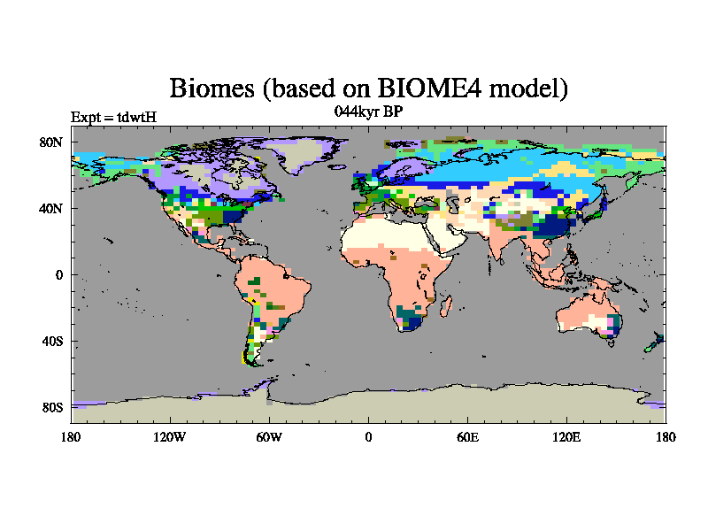 This is the 044kyr BP simulation for a new set of BBC runs using TRIFFID. Equilibrium mode, started from tdac set of simulations (old BBC dynamic TRIFFID runs). This version includes the dark_respiration update.