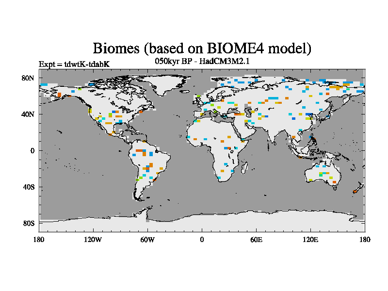 This is the 050kyr BP simulation for a new set of BBC runs using TRIFFID. Equilibrium mode, started from tdac set of simulations (old BBC dynamic TRIFFID runs). This version includes the dark_respiration update.