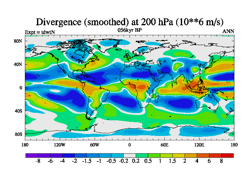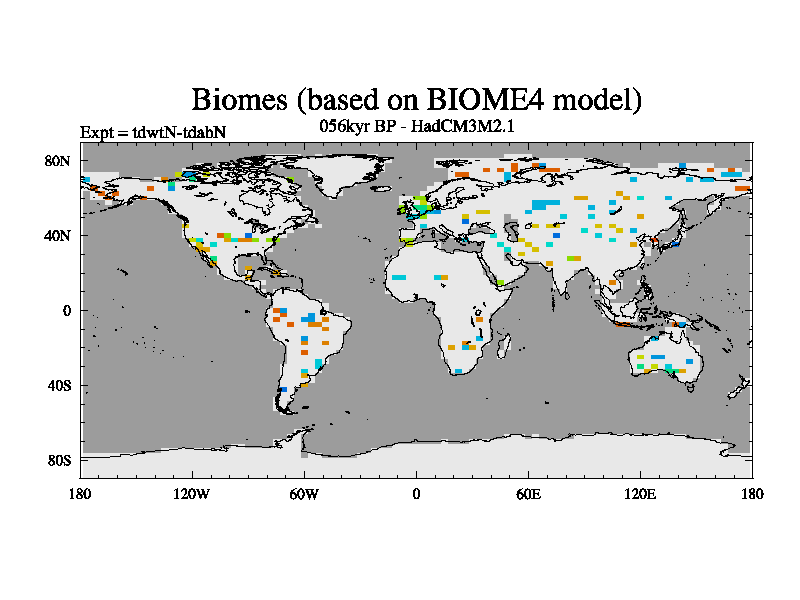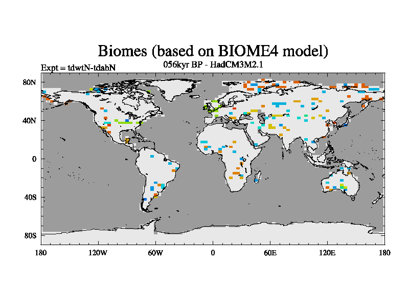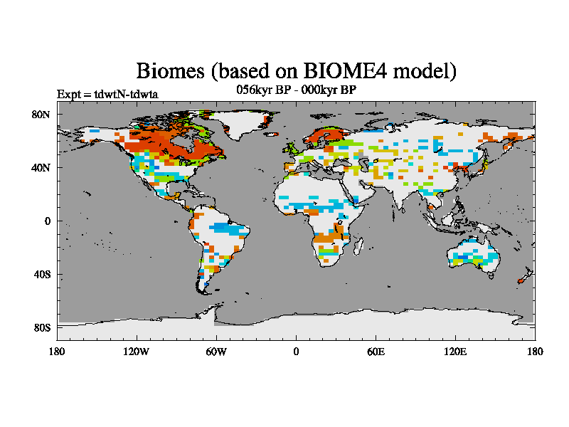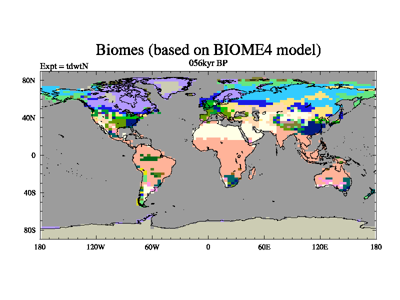This is the 056kyr BP simulation for a new set of BBC runs using TRIFFID. Equilibrium mode, started from tdac set of simulations (old BBC dynamic TRIFFID runs). This version includes the dark_respiration update.
