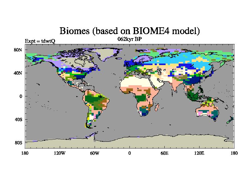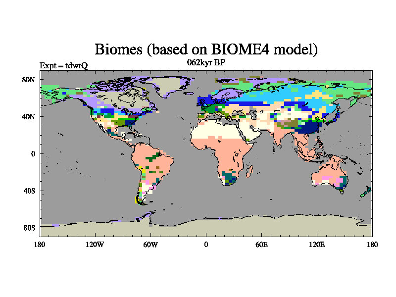 This is the 062kyr BP simulation for a new set of BBC runs using TRIFFID. Equilibrium mode, started from tdac set of simulations (old BBC dynamic TRIFFID runs). This version includes the dark_respiration update.