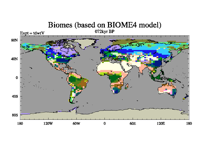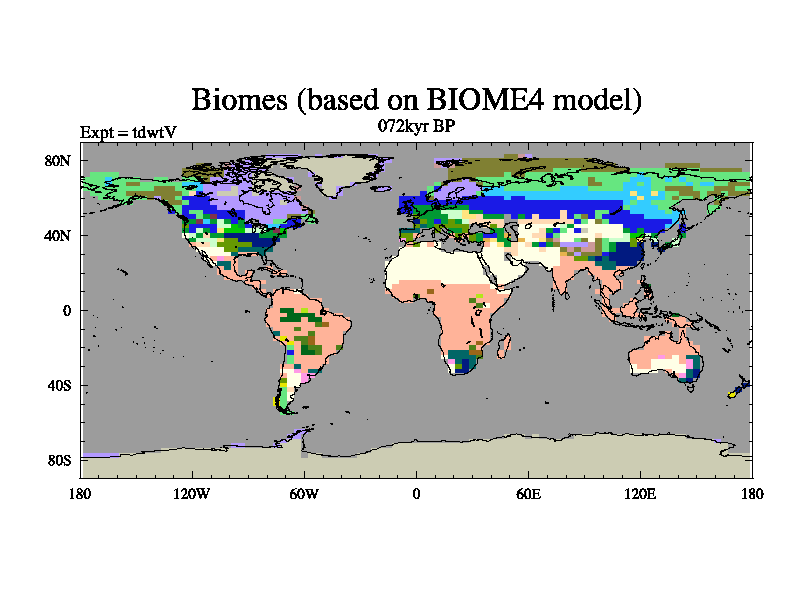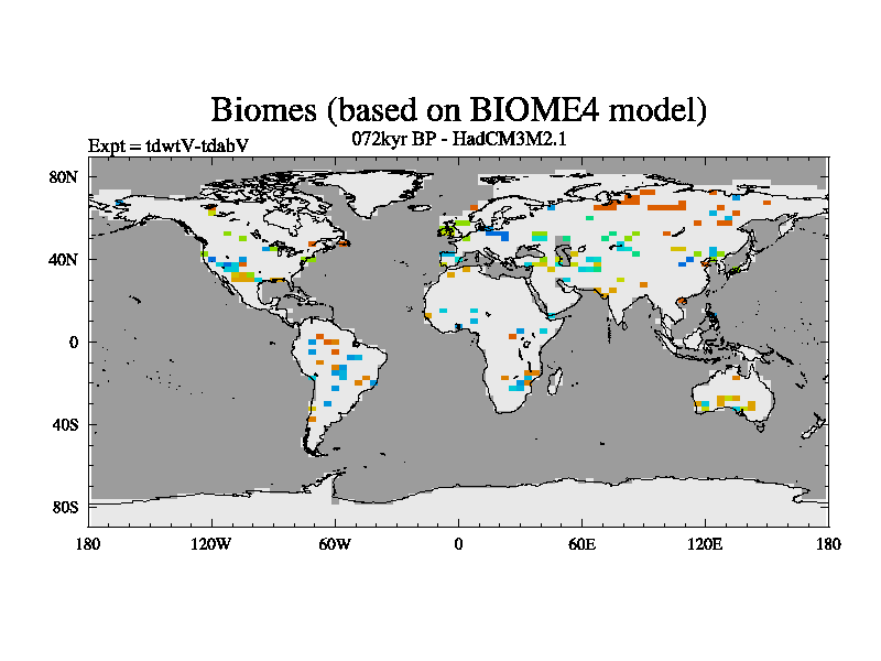 This is the 072kyr BP simulation for a new set of BBC runs using TRIFFID. Equilibrium mode, started from tdac set of simulations (old BBC dynamic TRIFFID runs). This version includes the dark_respiration update.