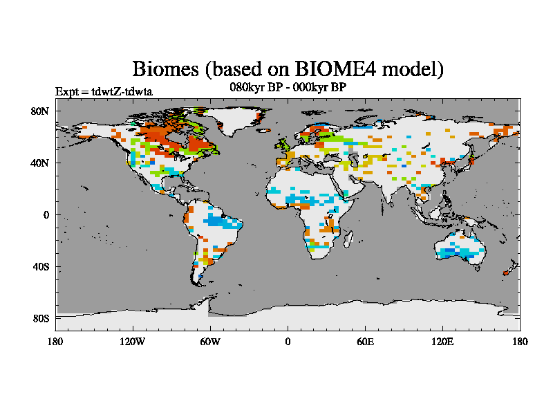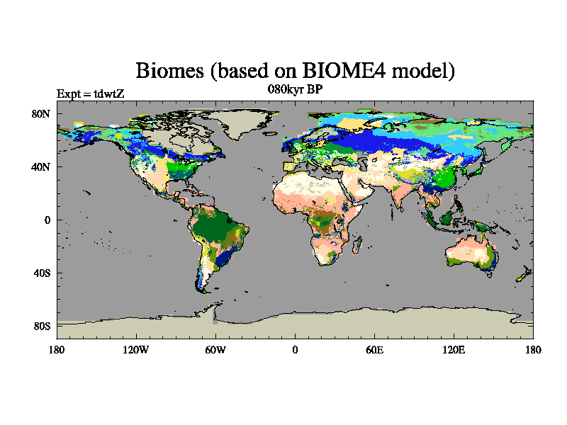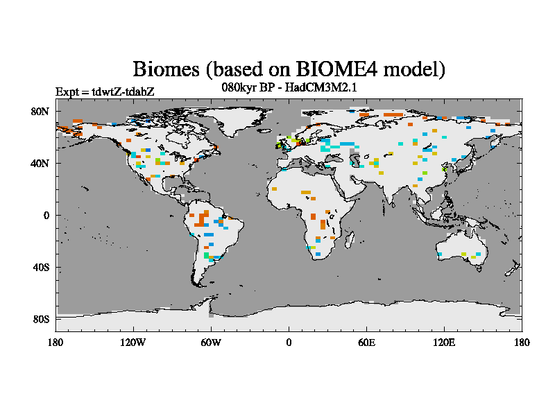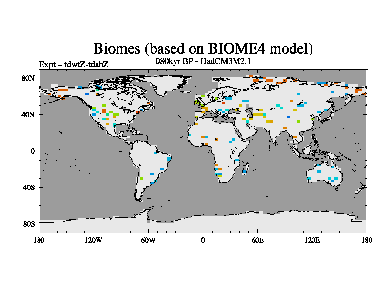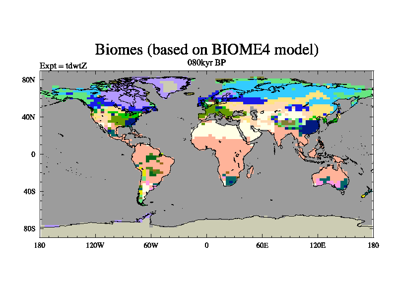 This is the 080kyr BP simulation for a new set of BBC runs using TRIFFID. Equilibrium mode, started from tdac set of simulations (old BBC dynamic TRIFFID runs). This version includes the dark_respiration update.