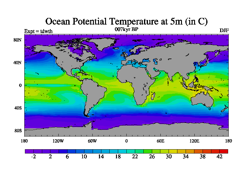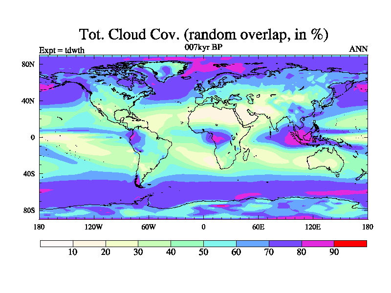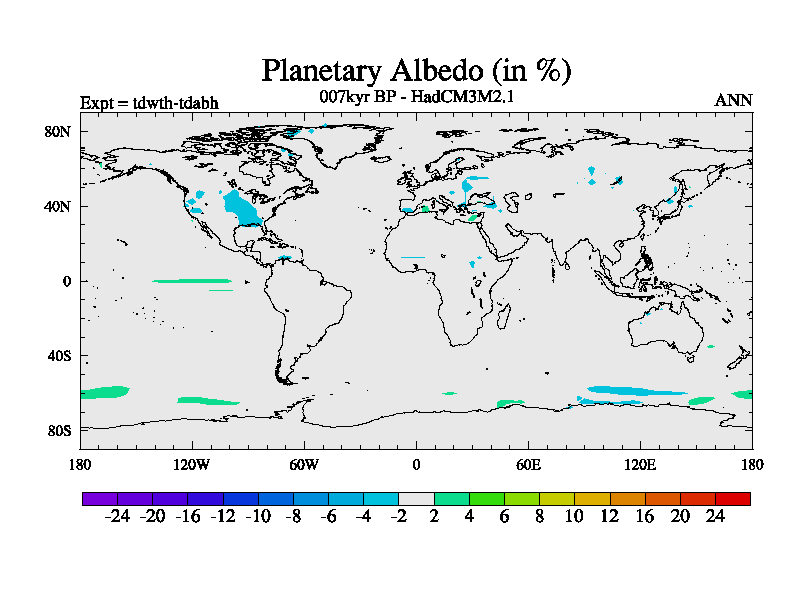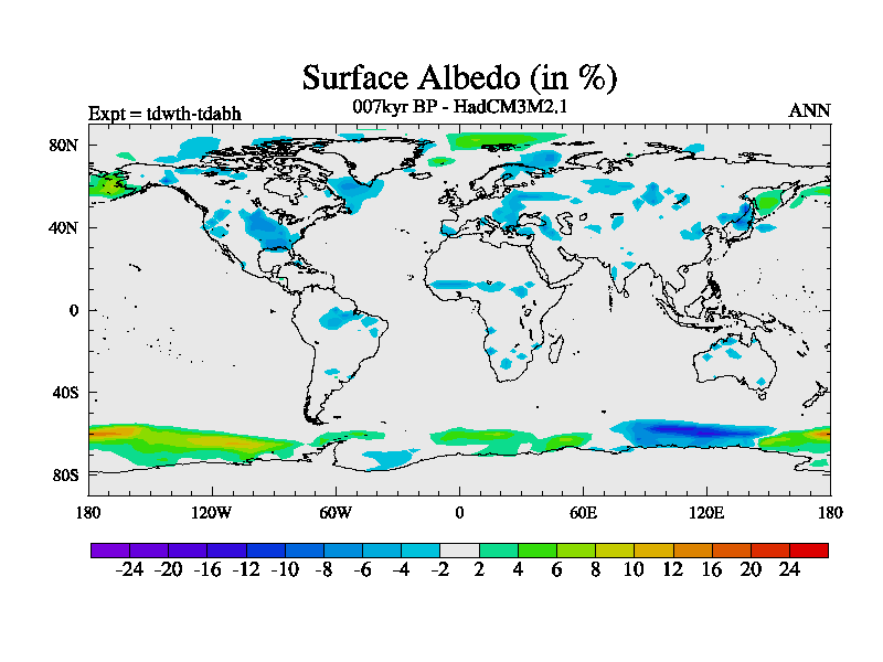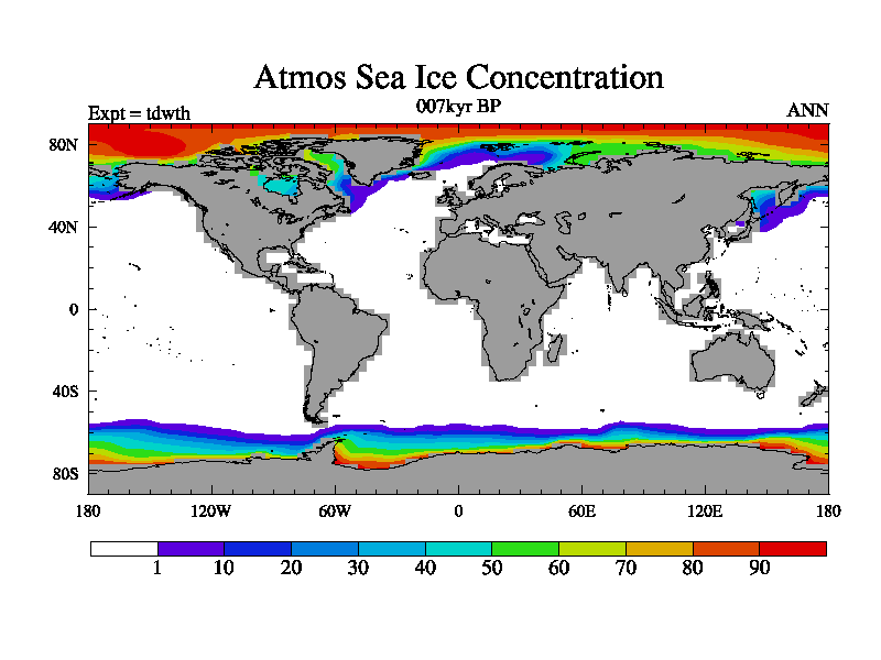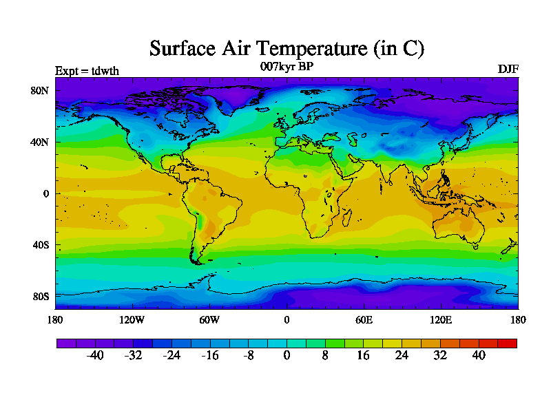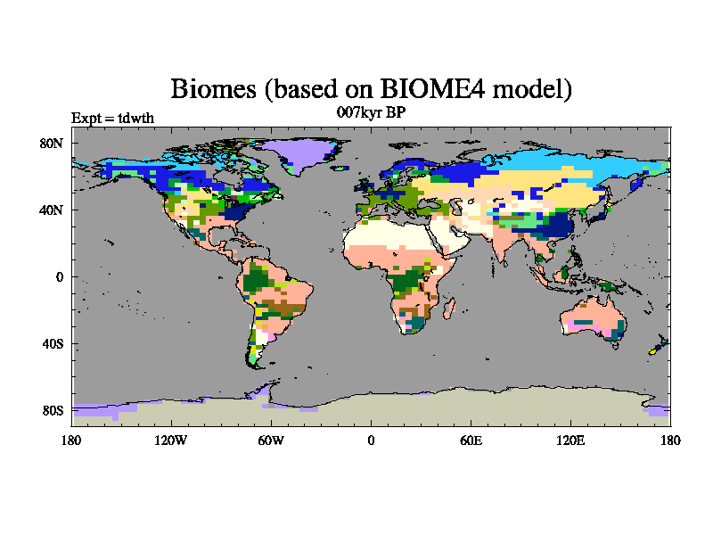 This is the 007kyr BP simulation for a new set of BBC runs using TRIFFID. Equilibrium mode, started from tdac set of simulations (old BBC dynamic TRIFFID runs). This version includes the dark_respiration update.