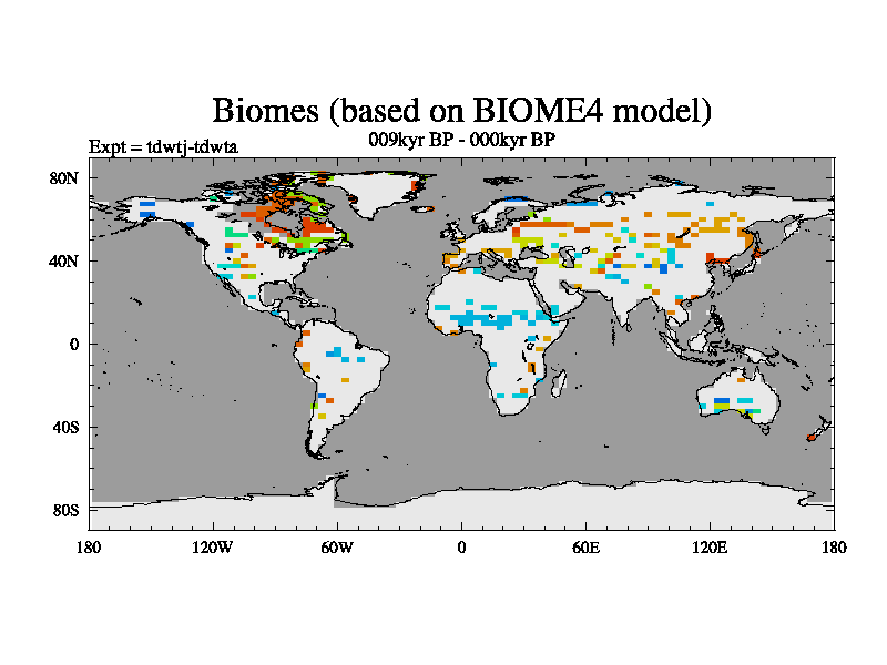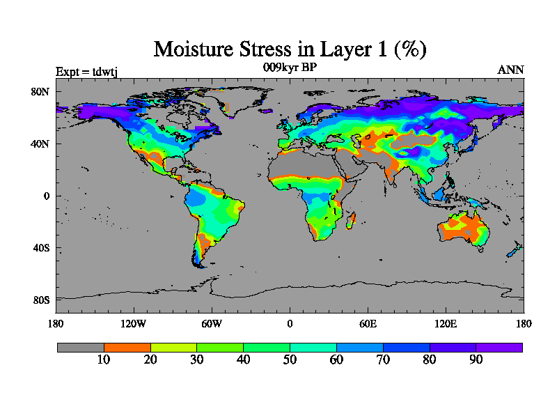 This is the 009kyr BP simulation for a new set of BBC runs using TRIFFID. Equilibrium mode, started from tdac set of simulations (old BBC dynamic TRIFFID runs). This version includes the dark_respiration update.