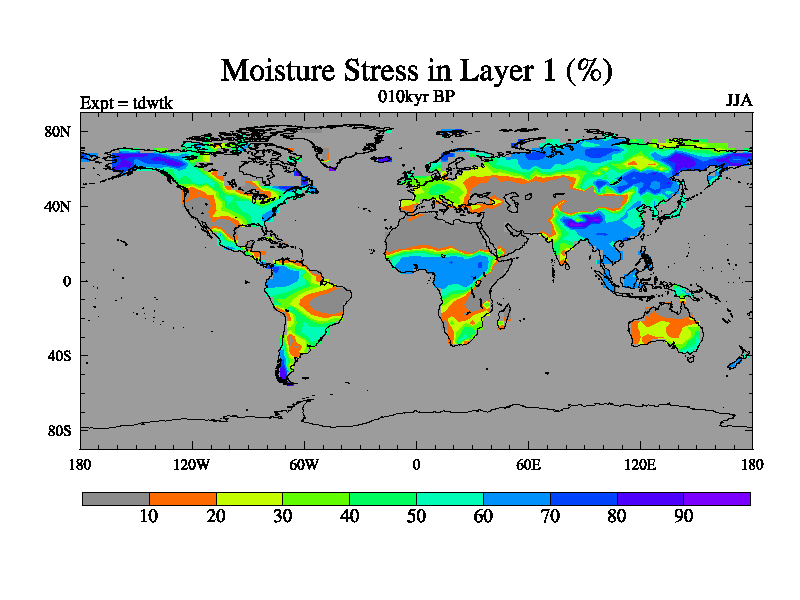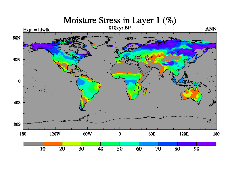 This is the 010kyr BP simulation for a new set of BBC runs using TRIFFID. Equilibrium mode, started from tdac set of simulations (old BBC dynamic TRIFFID runs). This version includes the dark_respiration update.