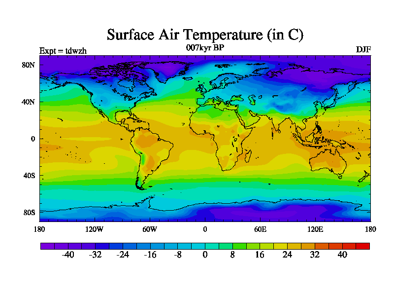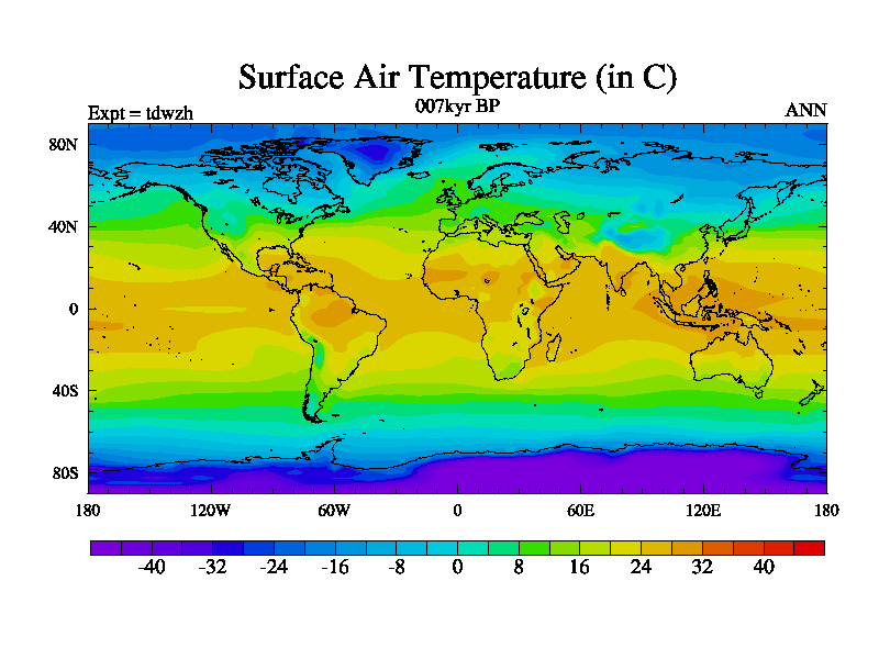 This is the 007kyr BP simulation for a new set of BBC runs using TRIFFID. Dynamic mode, started from tdwt set of simulations (new BBC dynamic TRIFFID runs). This version includes the dark_respiration update.