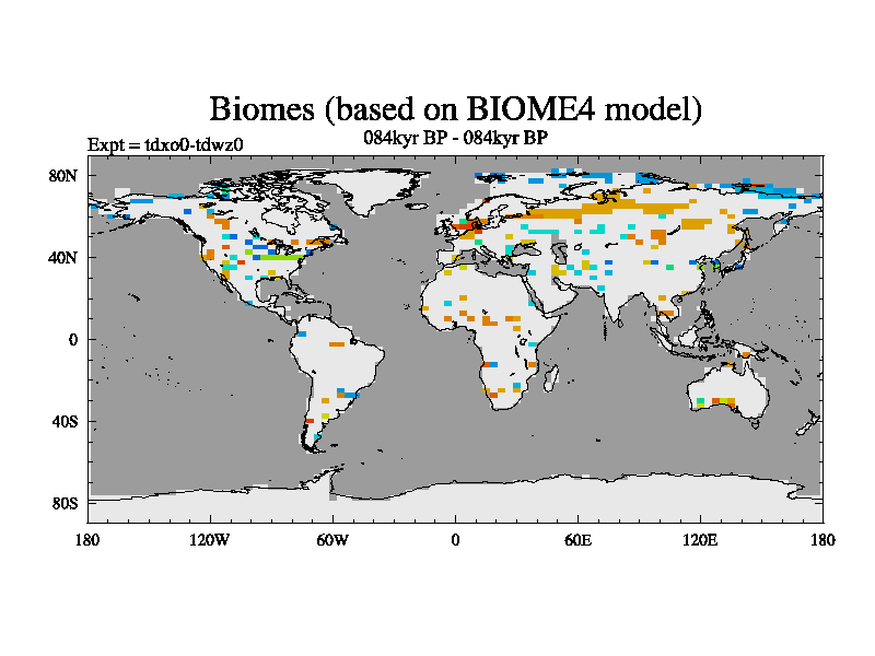 This is the 084kyr BP simulation for a new set of BBC runs using TRIFFID. Static mode, started from tdwt set of simulations (new BBC static TRIFFID runs). This version includes the dark_respiration update.