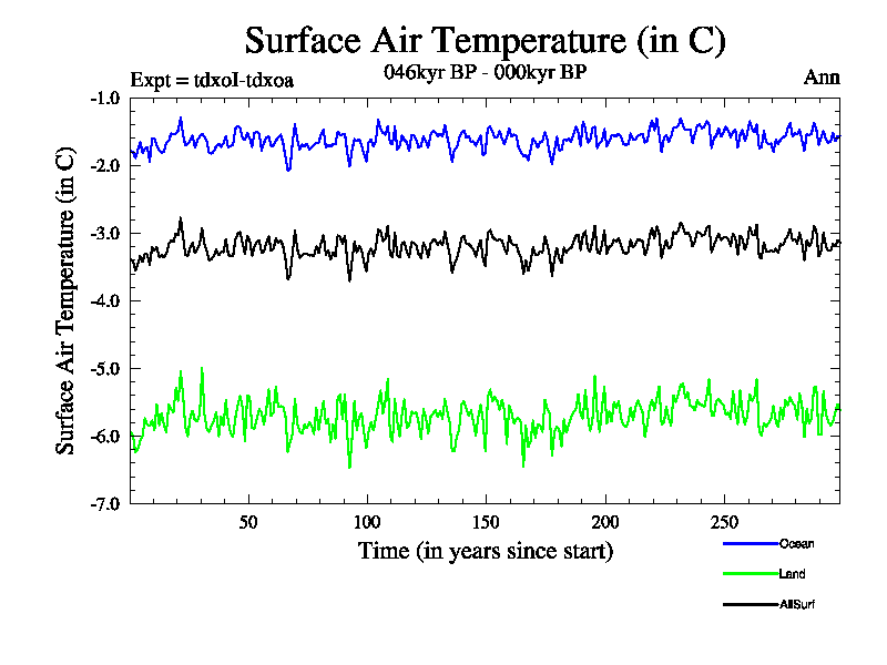 This is the 046kyr BP simulation for a new set of BBC runs using TRIFFID. Static mode, started from tdwt set of simulations (new BBC static TRIFFID runs). This version includes the dark_respiration update.