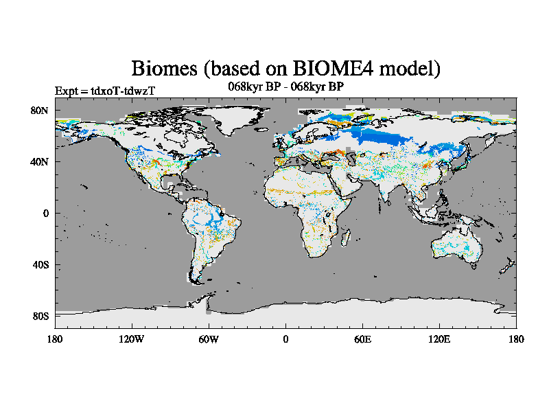 This is the 068kyr BP simulation for a new set of BBC runs using TRIFFID. Static mode, started from tdwt set of simulations (new BBC static TRIFFID runs). This version includes the dark_respiration update.