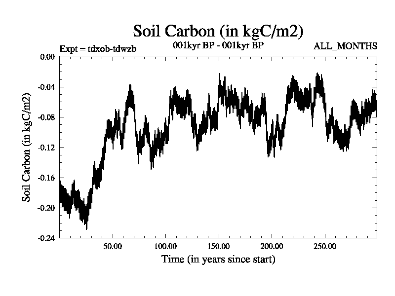 This is the 001kyr BP simulation for a new set of BBC runs using TRIFFID. Static mode, started from tdwt set of simulations (new BBC static TRIFFID runs). This version includes the dark_respiration update.