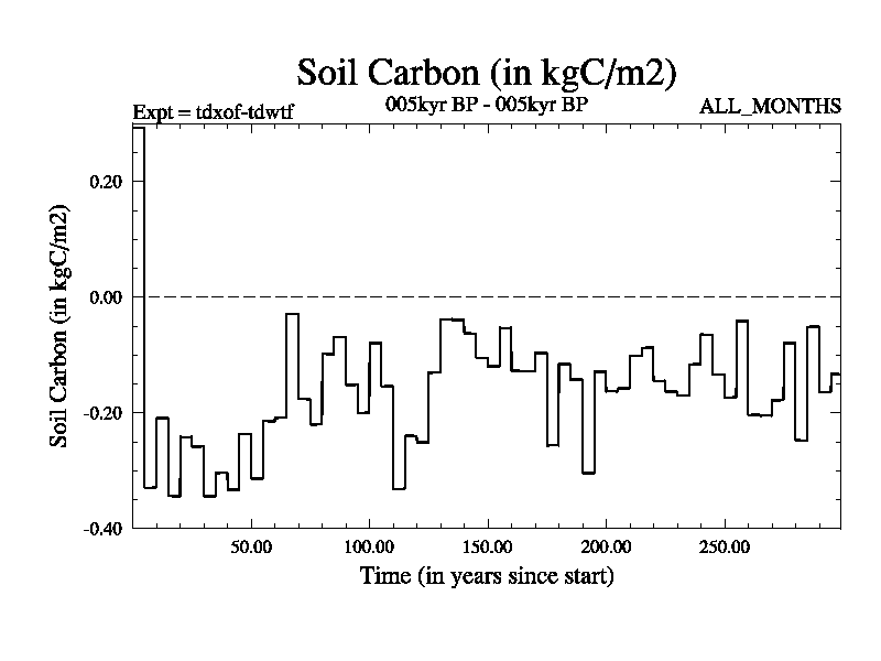 This is the 005kyr BP simulation for a new set of BBC runs using TRIFFID. Static mode, started from tdwt set of simulations (new BBC static TRIFFID runs). This version includes the dark_respiration update.