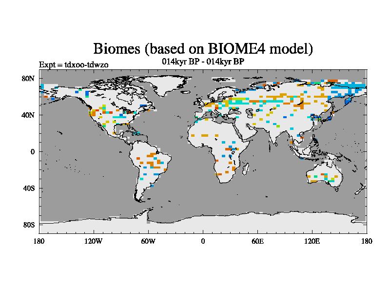 This is the 014kyr BP simulation for a new set of BBC runs using TRIFFID. Static mode, started from tdwt set of simulations (new BBC static TRIFFID runs). This version includes the dark_respiration update.