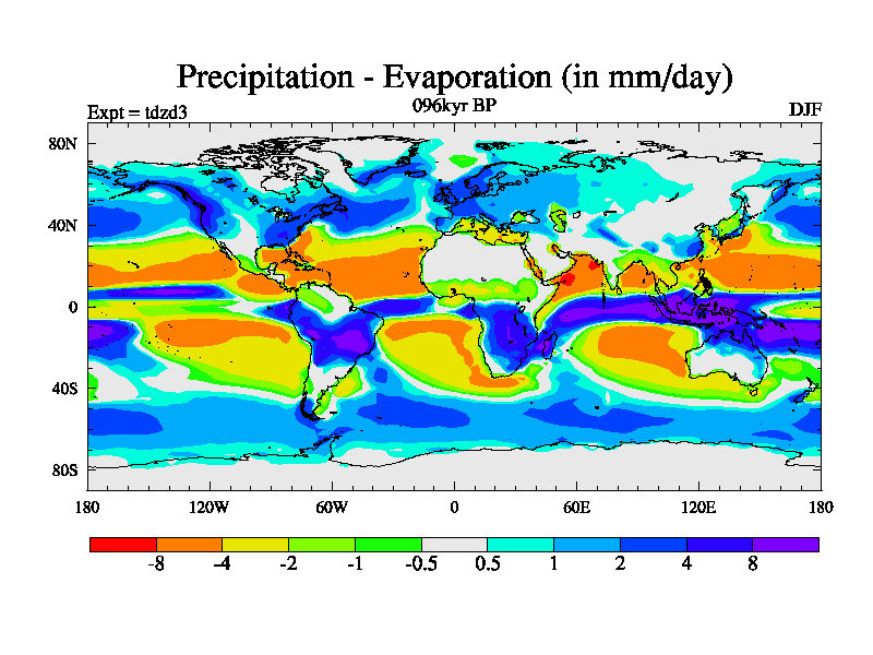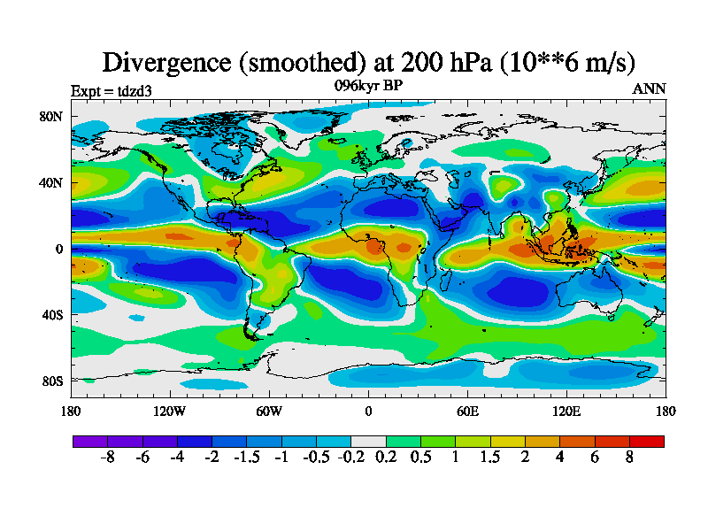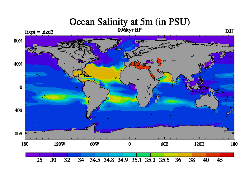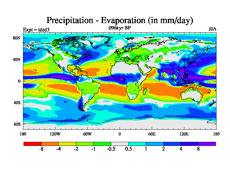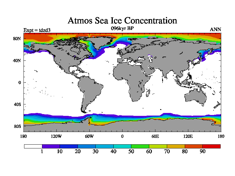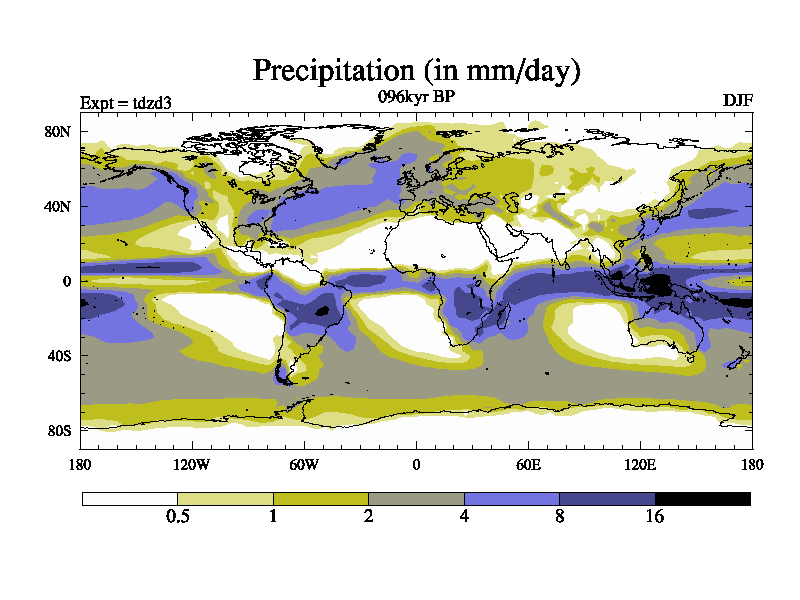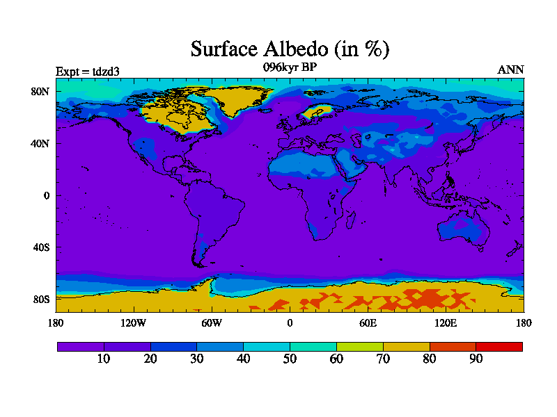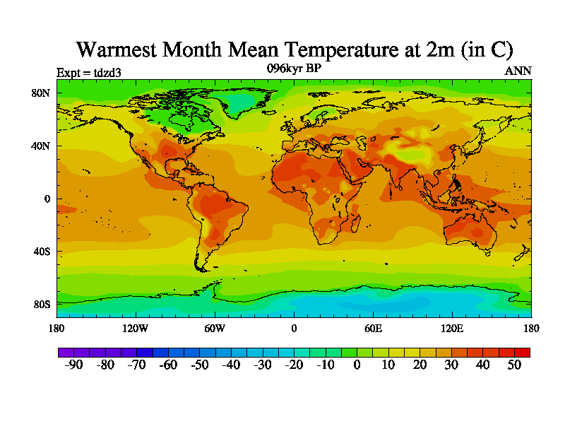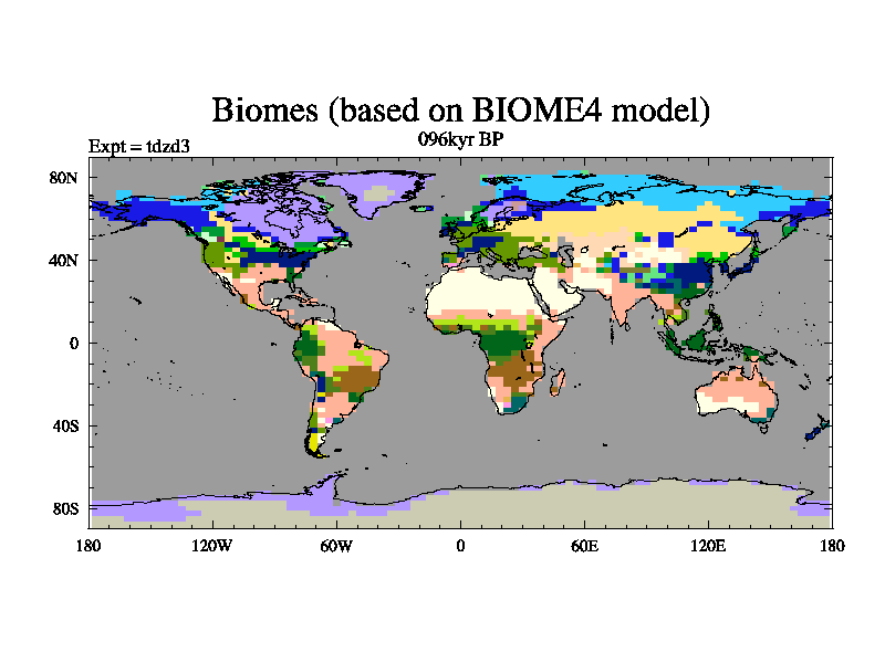 This is the 096kyr BP simulation for a new set of BBC runs using TRIFFID. Static mode, started from half way through tdxo set of simulations (new BBC static TRIFFID runs). This version includes the dark_respiration update. Vegetation is from the pre-industrial run tdwza, and CO2 is doubled over tdxo version.