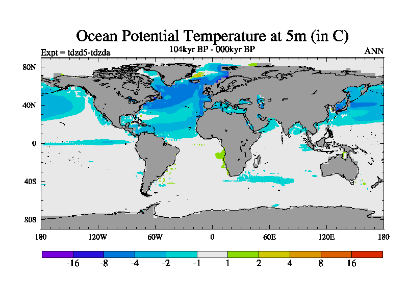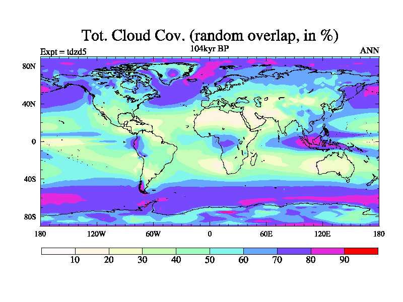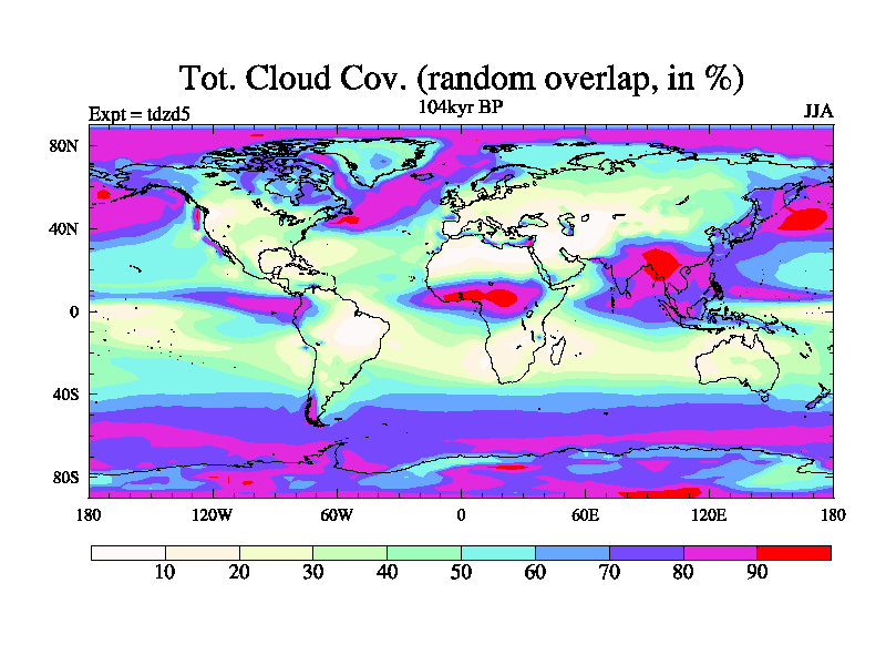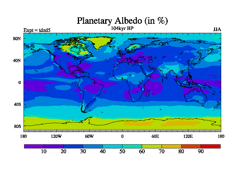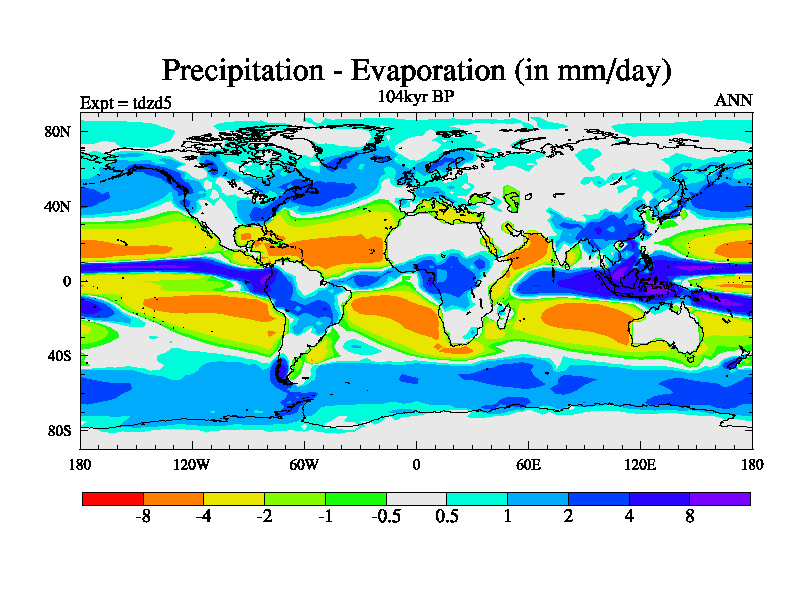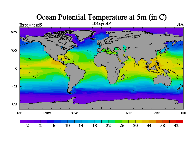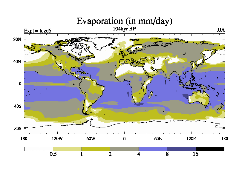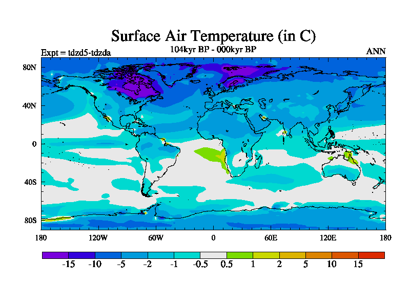 This is the 104kyr BP simulation for a new set of BBC runs using TRIFFID. Static mode, started from half way through tdxo set of simulations (new BBC static TRIFFID runs). This version includes the dark_respiration update. Vegetation is from the pre-industrial run tdwza, and CO2 is doubled over tdxo version.