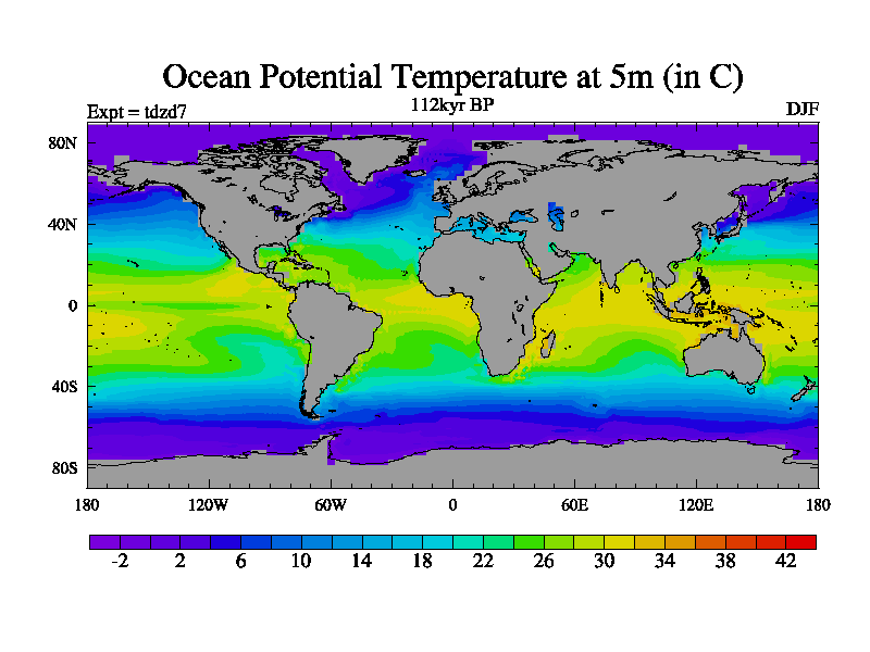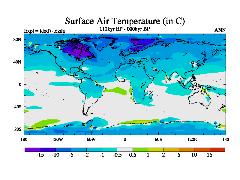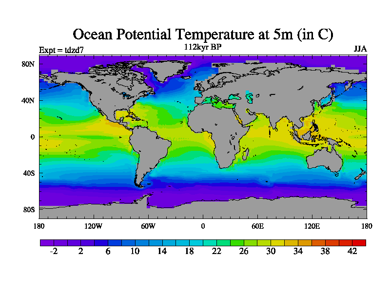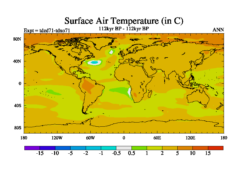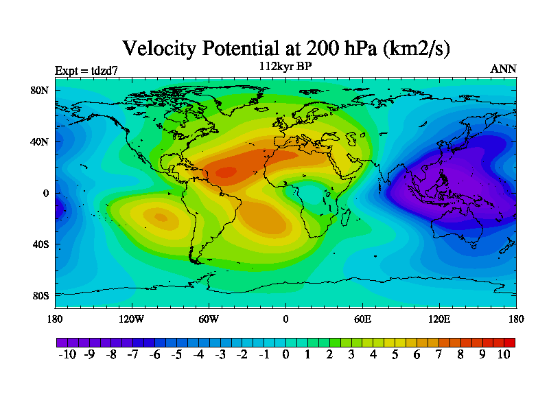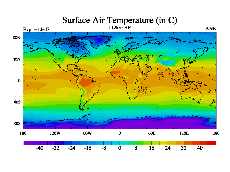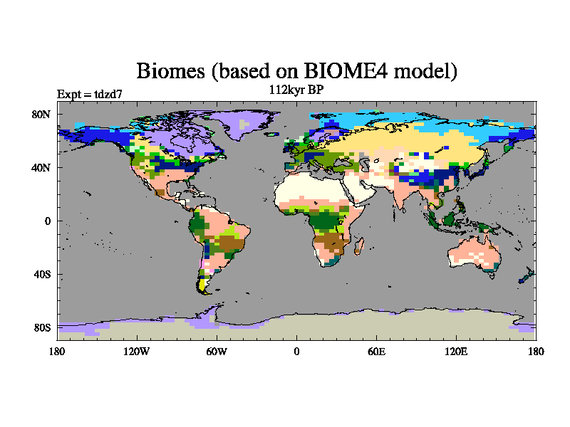 This is the 112kyr BP simulation for a new set of BBC runs using TRIFFID. Static mode, started from half way through tdxo set of simulations (new BBC static TRIFFID runs). This version includes the dark_respiration update. Vegetation is from the pre-industrial run tdwza, and CO2 is doubled over tdxo version.