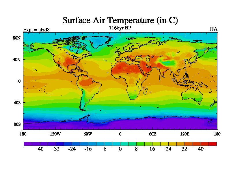 This is the 116kyr BP simulation for a new set of BBC runs using TRIFFID. Static mode, started from half way through tdxo set of simulations (new BBC static TRIFFID runs). This version includes the dark_respiration update. Vegetation is from the pre-industrial run tdwza, and CO2 is doubled over tdxo version.