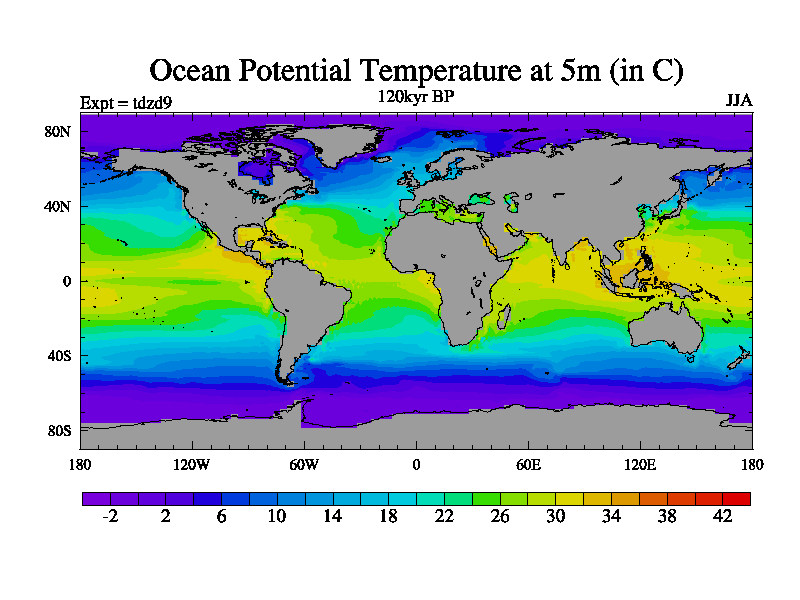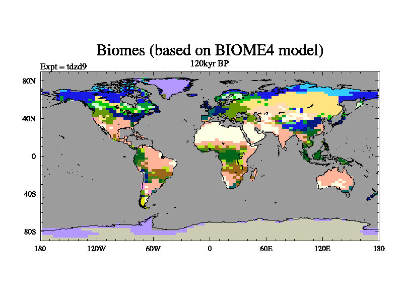 This is the 120kyr BP simulation for a new set of BBC runs using TRIFFID. Static mode, started from half way through tdxo set of simulations (new BBC static TRIFFID runs). This version includes the dark_respiration update. Vegetation is from the pre-industrial run tdwza, and CO2 is doubled over tdxo version.