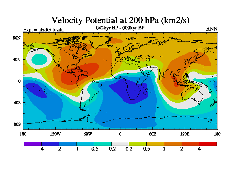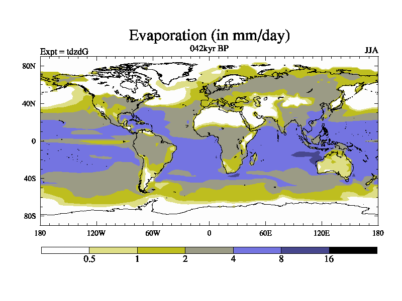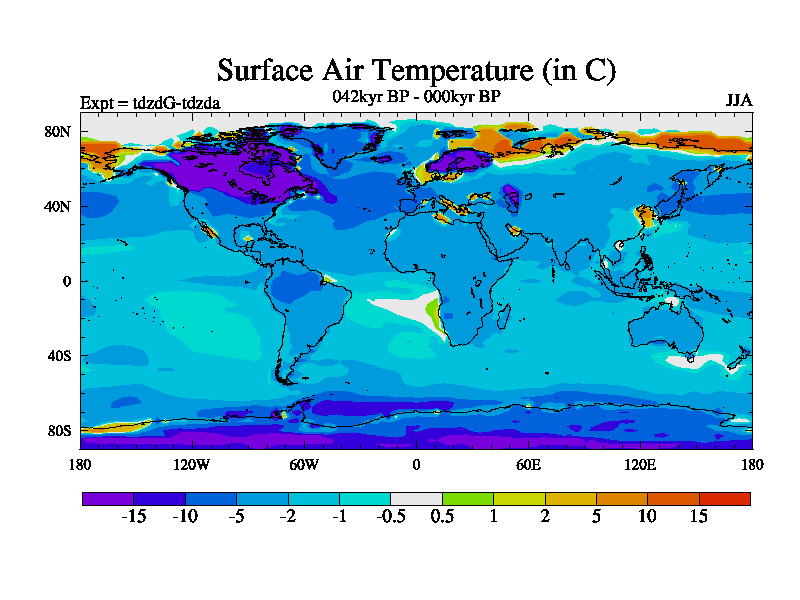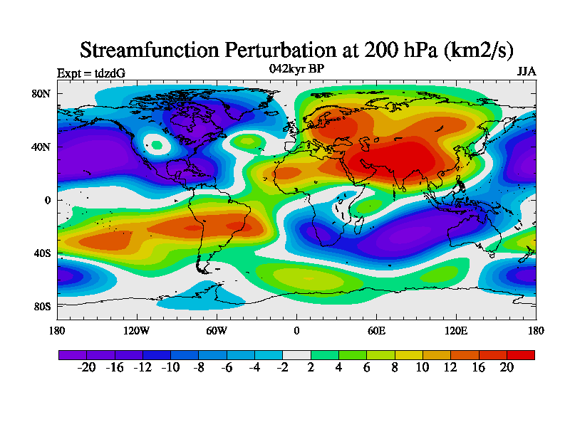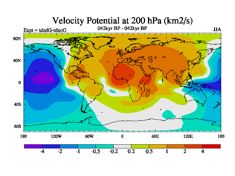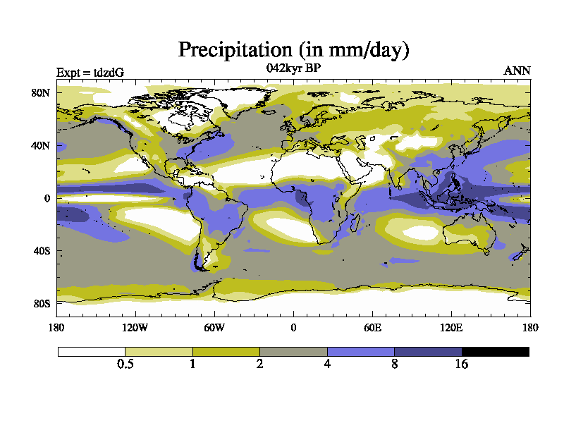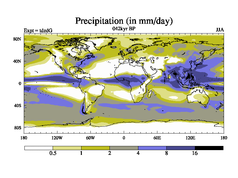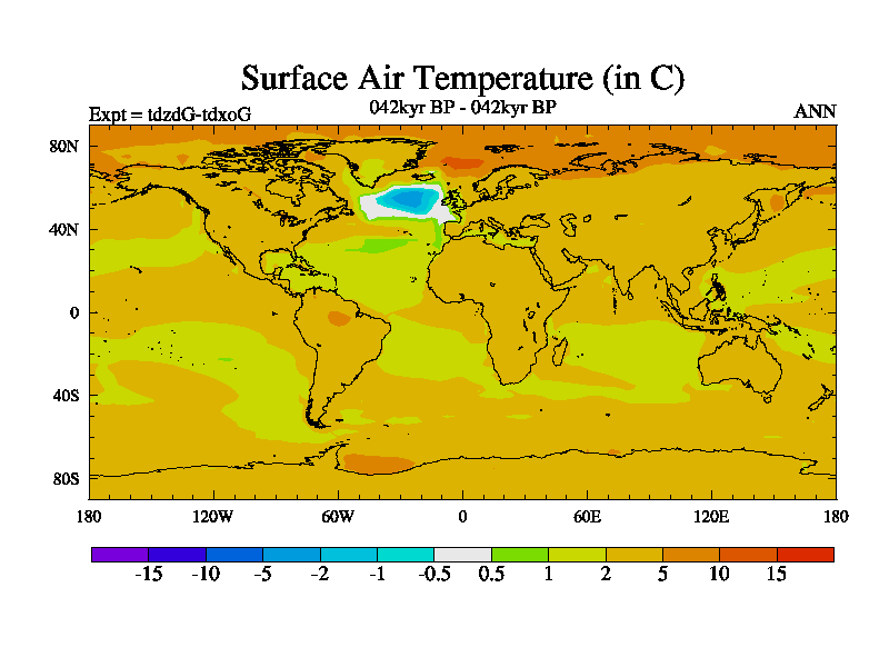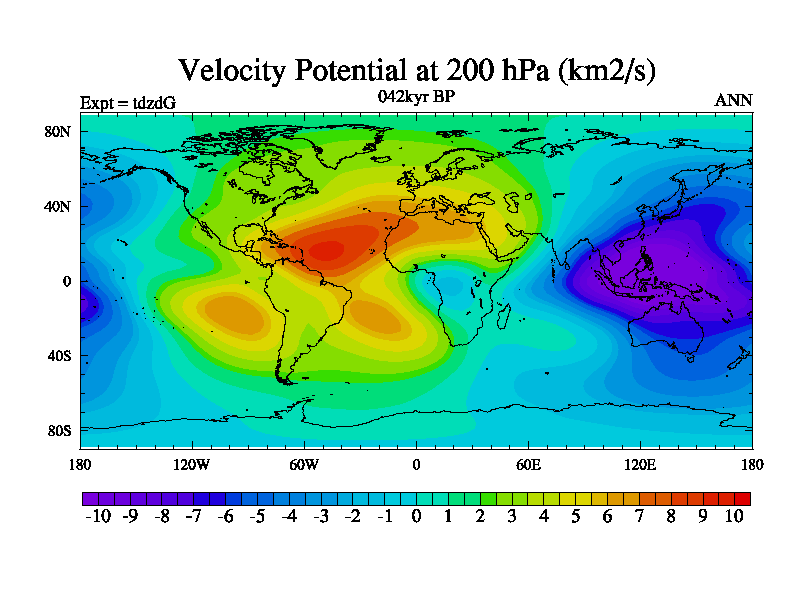 This is the 042kyr BP simulation for a new set of BBC runs using TRIFFID. Static mode, started from half way through tdxo set of simulations (new BBC static TRIFFID runs). This version includes the dark_respiration update. Vegetation is from the pre-industrial run tdwza, and CO2 is doubled over tdxo version.