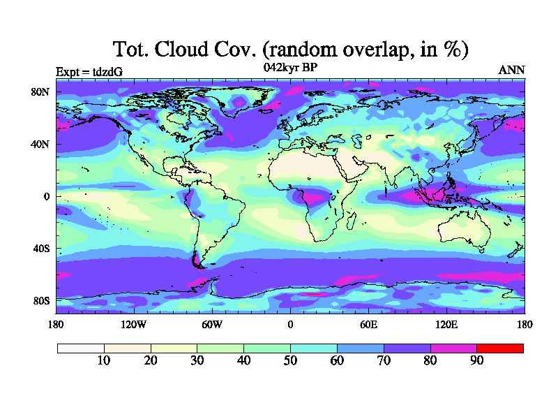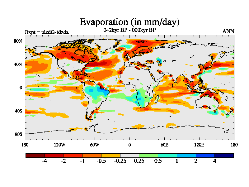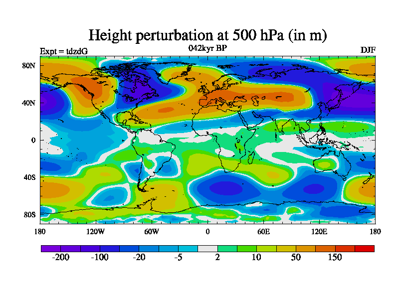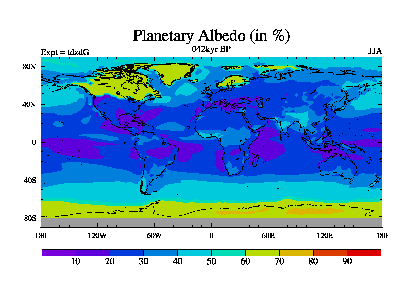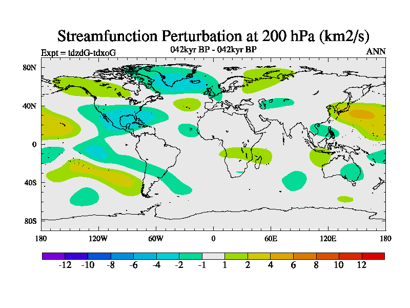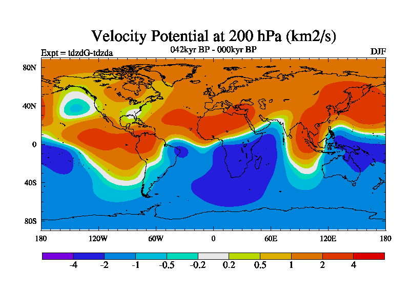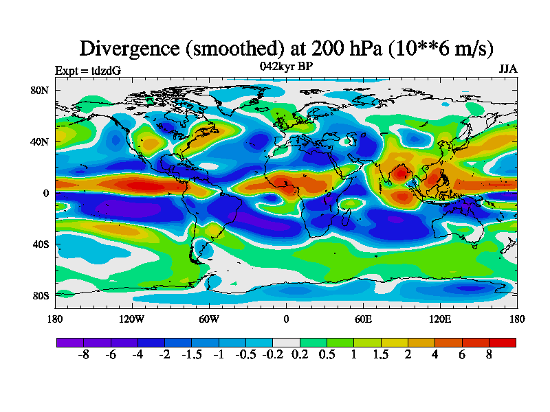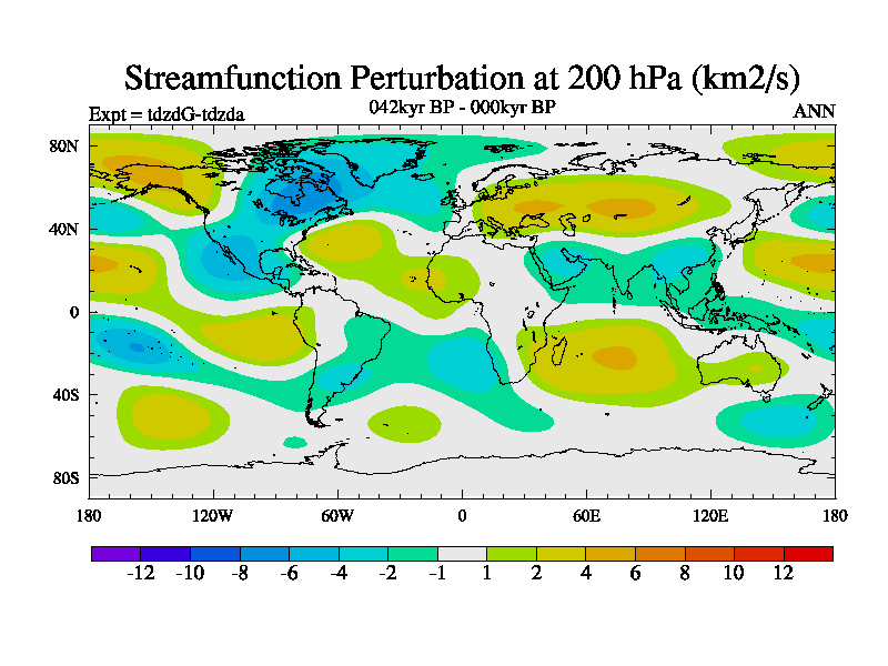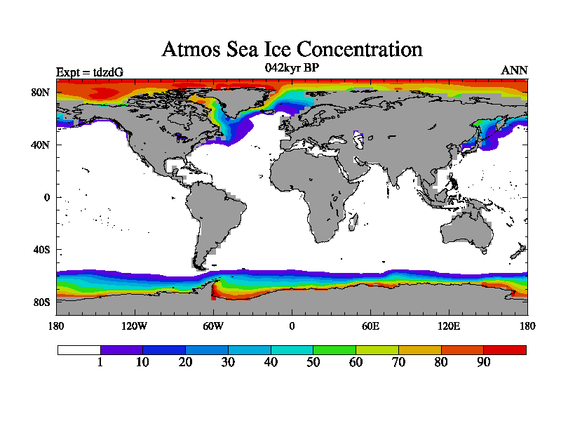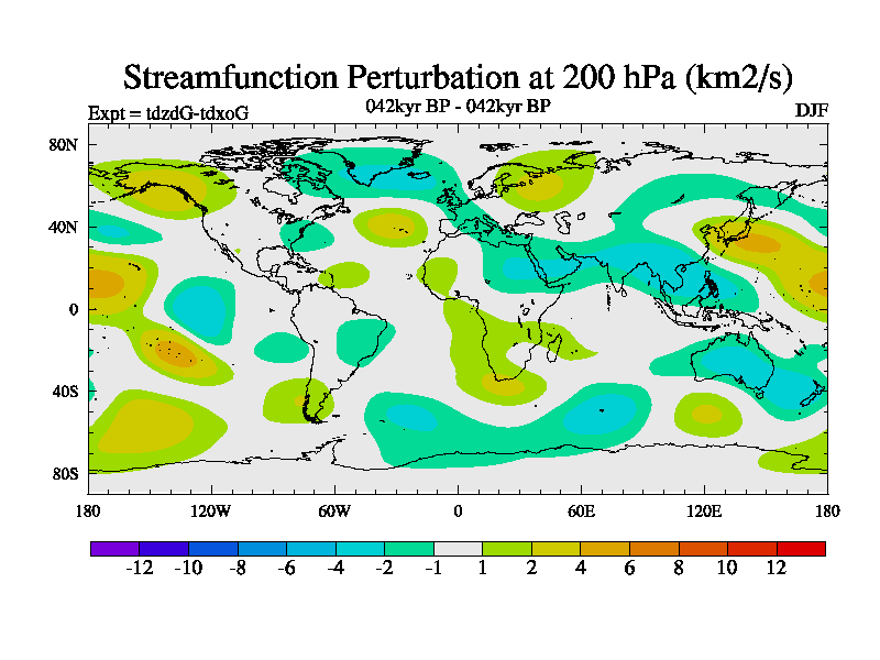 This is the 042kyr BP simulation for a new set of BBC runs using TRIFFID. Static mode, started from half way through tdxo set of simulations (new BBC static TRIFFID runs). This version includes the dark_respiration update. Vegetation is from the pre-industrial run tdwza, and CO2 is doubled over tdxo version.