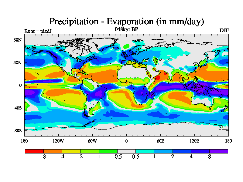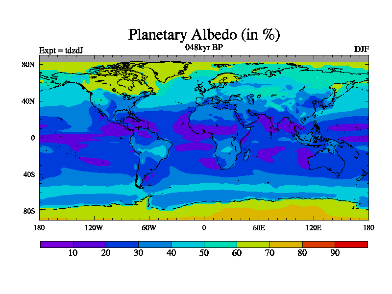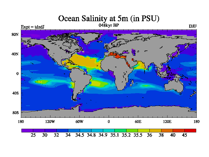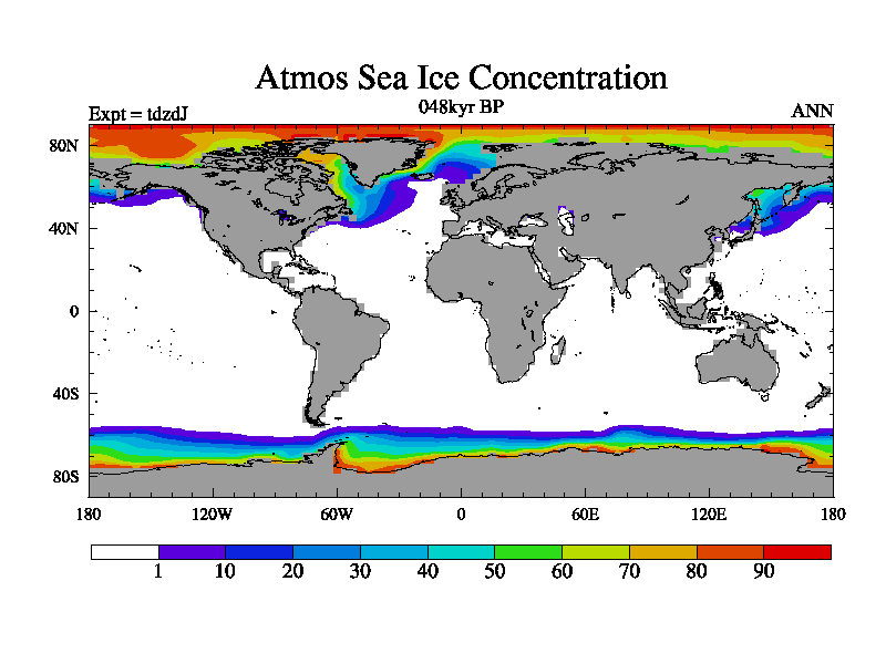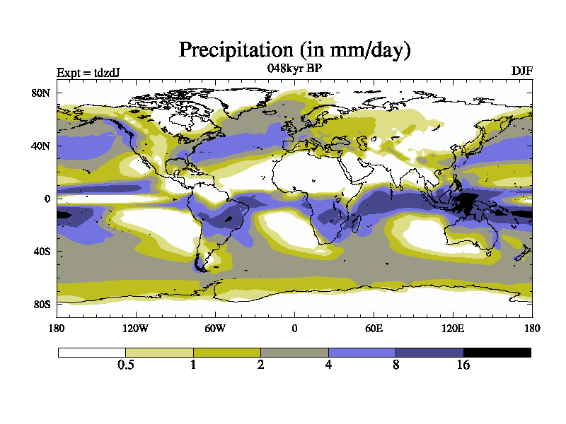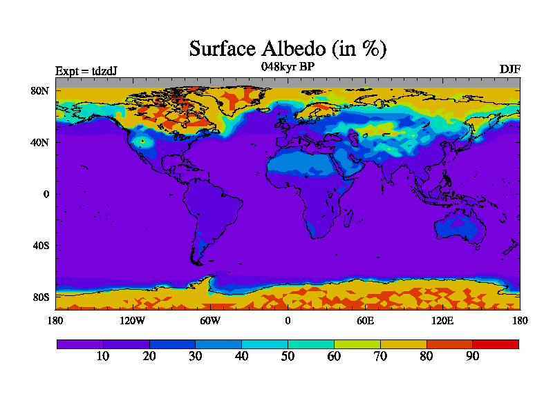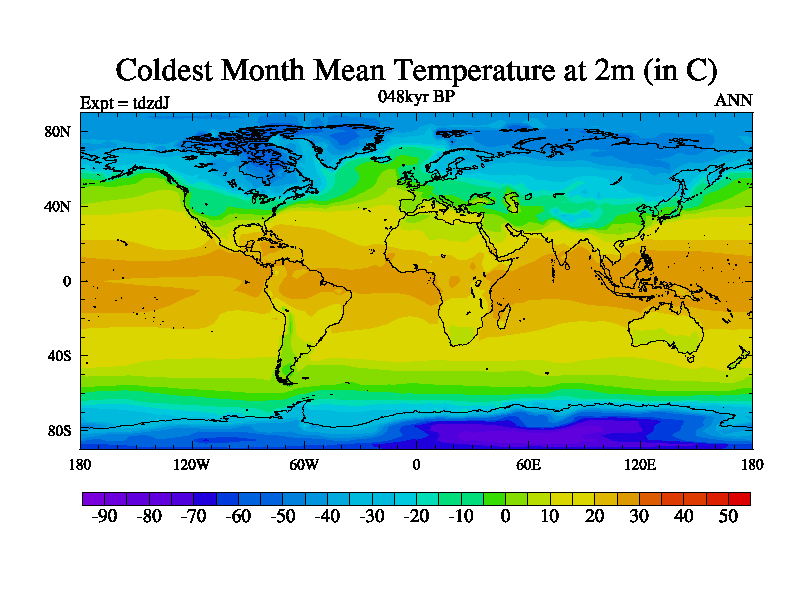 This is the 048kyr BP simulation for a new set of BBC runs using TRIFFID. Static mode, started from half way through tdxo set of simulations (new BBC static TRIFFID runs). This version includes the dark_respiration update. Vegetation is from the pre-industrial run tdwza, and CO2 is doubled over tdxo version.