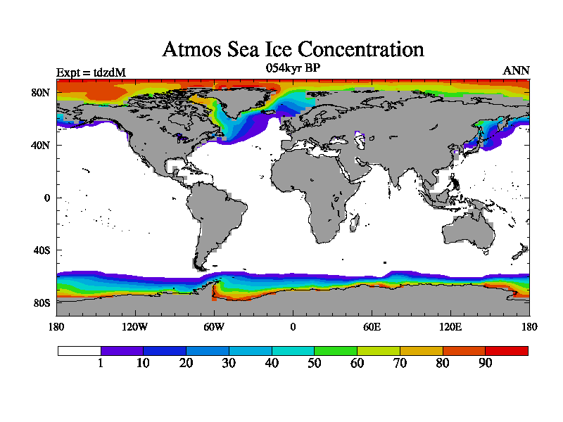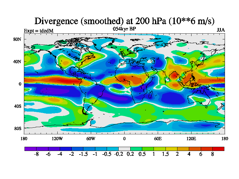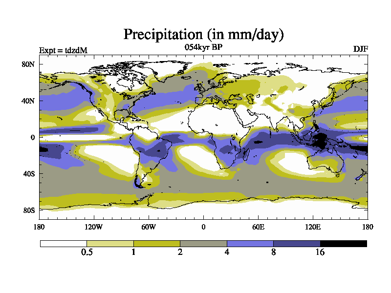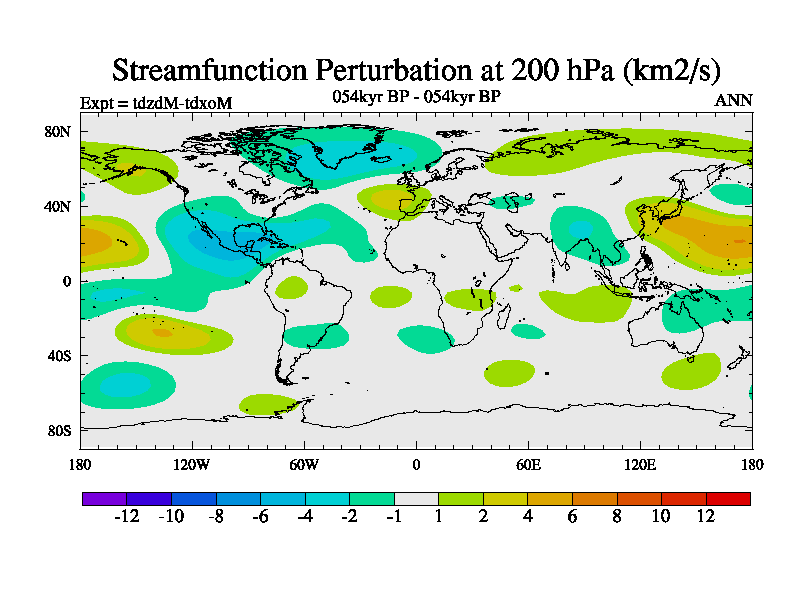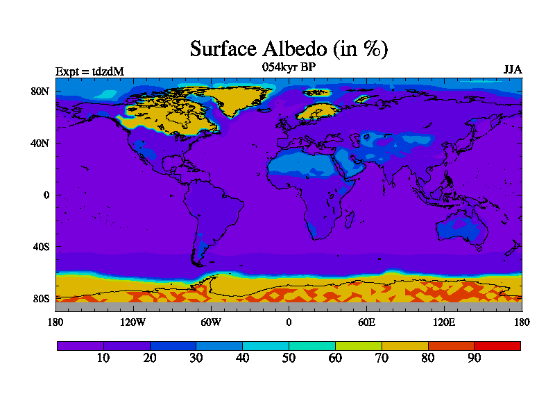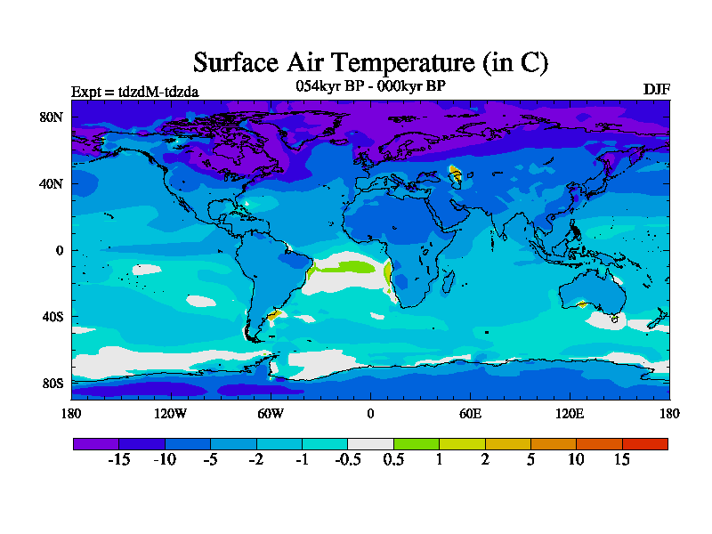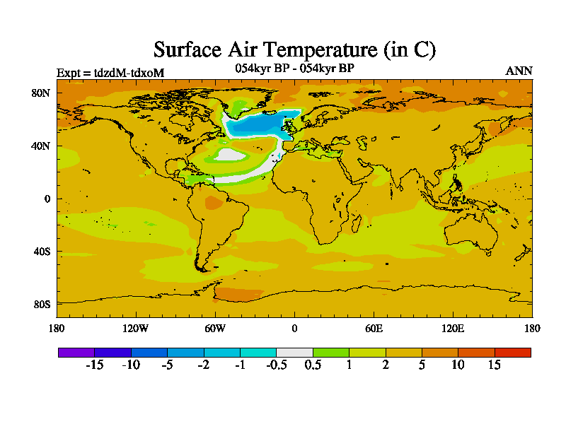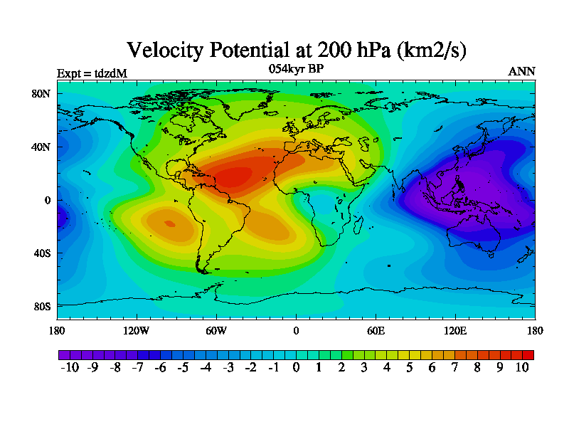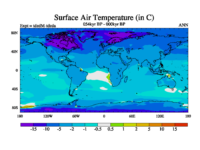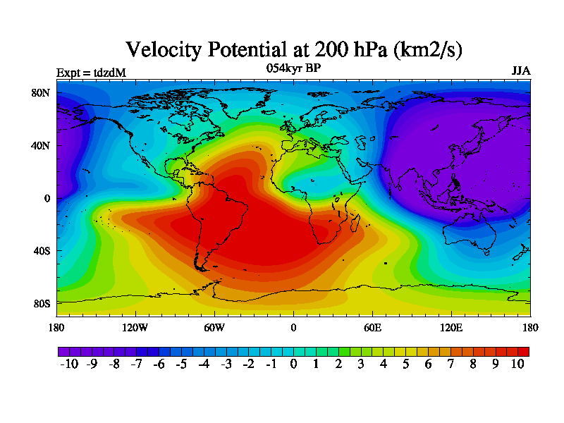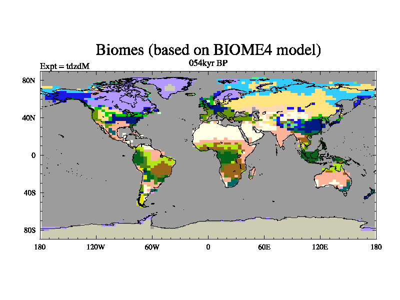 This is the 054kyr BP simulation for a new set of BBC runs using TRIFFID. Static mode, started from half way through tdxo set of simulations (new BBC static TRIFFID runs). This version includes the dark_respiration update. Vegetation is from the pre-industrial run tdwza, and CO2 is doubled over tdxo version.