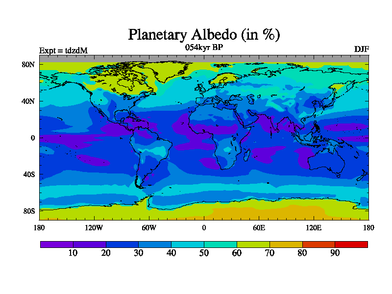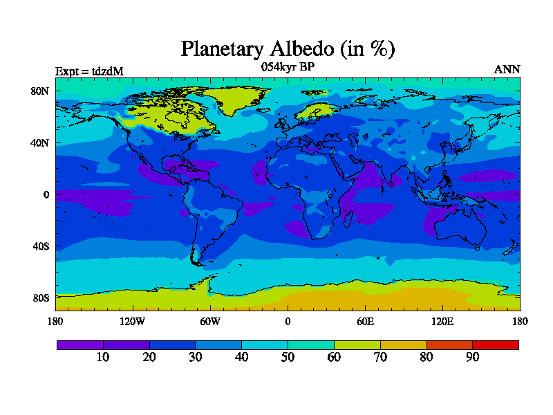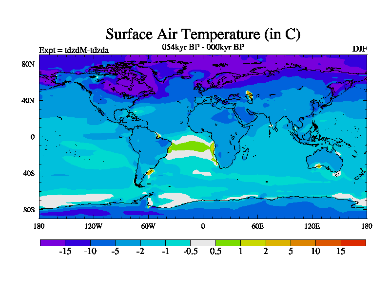 This is the 054kyr BP simulation for a new set of BBC runs using TRIFFID. Static mode, started from half way through tdxo set of simulations (new BBC static TRIFFID runs). This version includes the dark_respiration update. Vegetation is from the pre-industrial run tdwza, and CO2 is doubled over tdxo version.