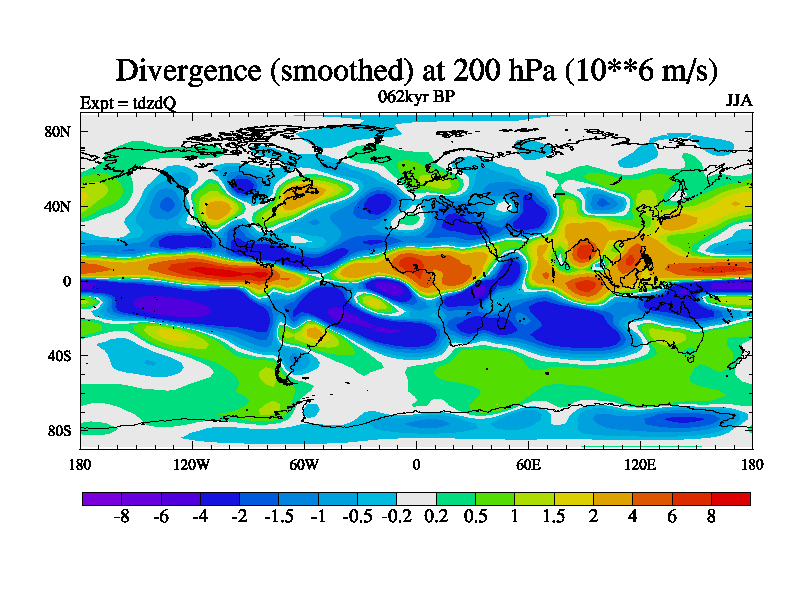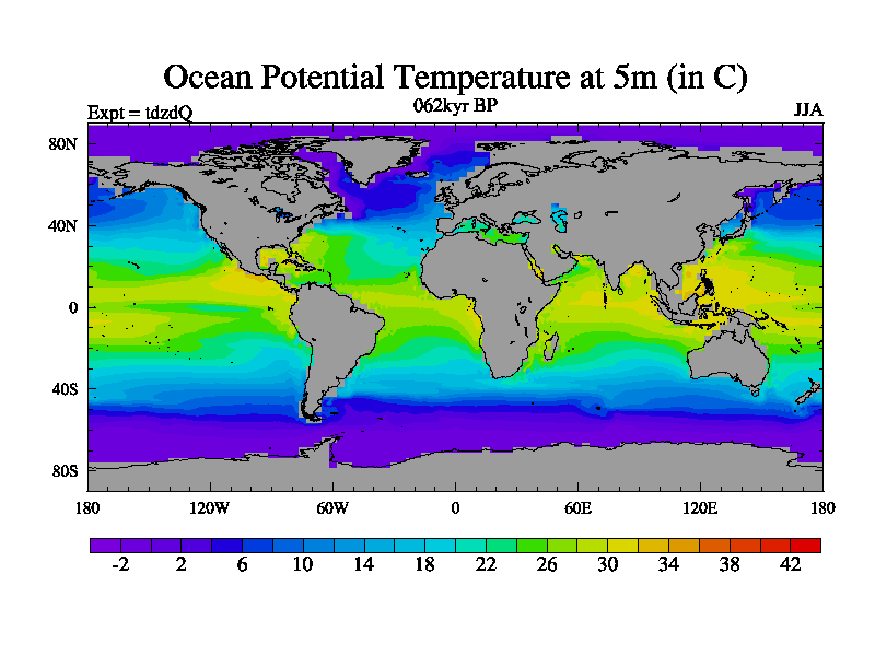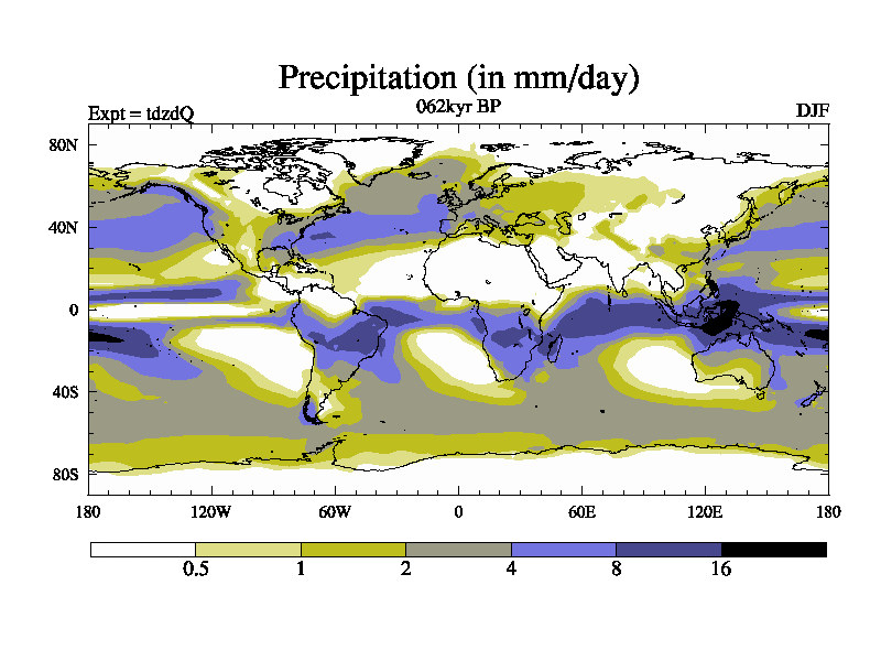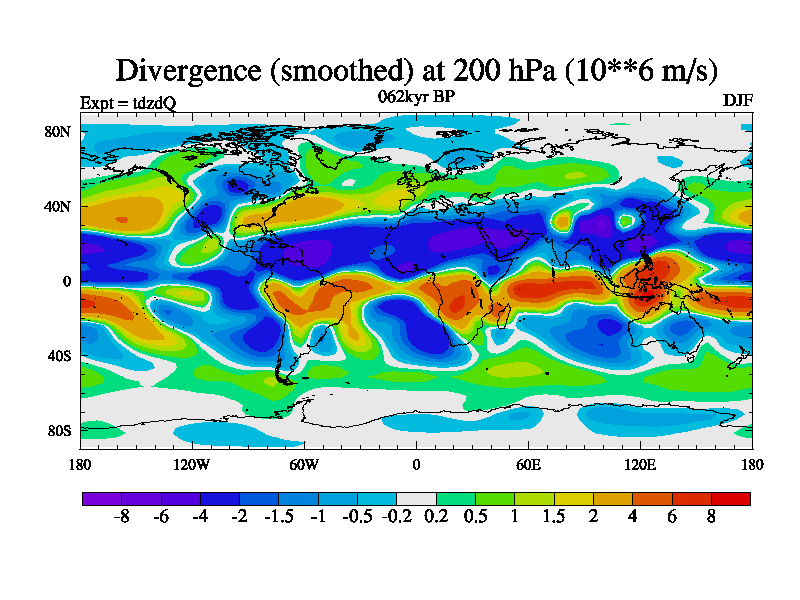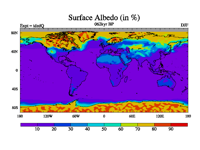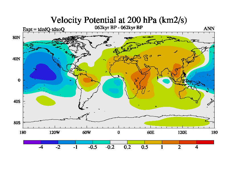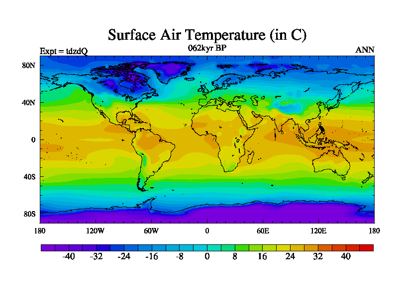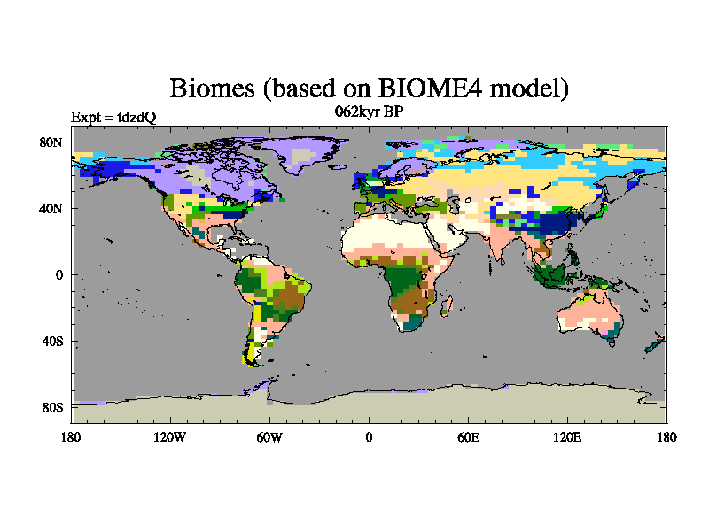 This is the 062kyr BP simulation for a new set of BBC runs using TRIFFID. Static mode, started from half way through tdxo set of simulations (new BBC static TRIFFID runs). This version includes the dark_respiration update. Vegetation is from the pre-industrial run tdwza, and CO2 is doubled over tdxo version.