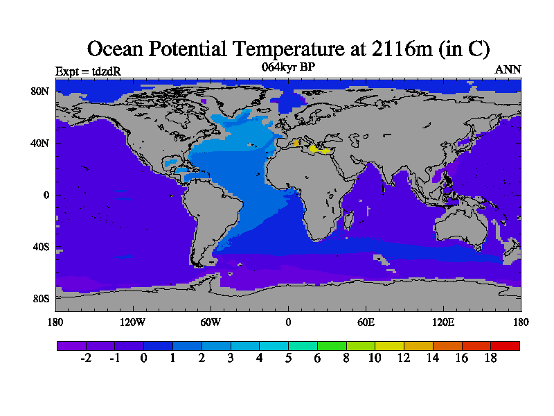 This is the 064kyr BP simulation for a new set of BBC runs using TRIFFID. Static mode, started from half way through tdxo set of simulations (new BBC static TRIFFID runs). This version includes the dark_respiration update. Vegetation is from the pre-industrial run tdwza, and CO2 is doubled over tdxo version.